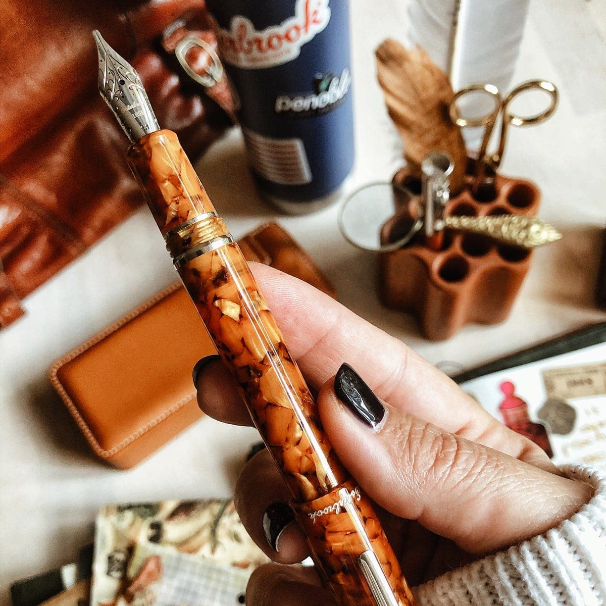 Die Schreibgeräte Firma Esterbrook ist ein echtes amerikanisches Original und schreibt eine lange Erfolgsgeschichte. Das Re-Branding der Firma läutet mit frischen, neuen Stilkollektionen eine ganz neue Generation ein. Estie, ein moderner Spitzname für die Marke und ein Symbol der Nostalgie der 1930er Jahre. Estie hat ein klares und zurückhaltendes Design mit einer ringlosen Mitte und einem schlanken und schmalen Klipp. Der Estie Honeycomb Füller ist ein echter Hingucker und glänzt durch seine interessante, honigleuchtende Farbe.