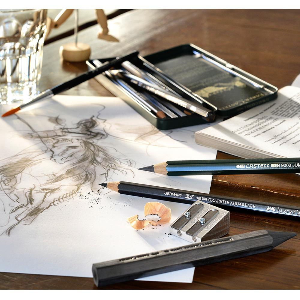 Faber-Castell Set Pitt Graphit klein im Metalletui - Dieses Set im Metalletui beinhaltet 11 verschiedenen Artikel für den Zeichenbedarf. Die ideale Basisausstattung für jeden Künstler und die die es werden möchten.
