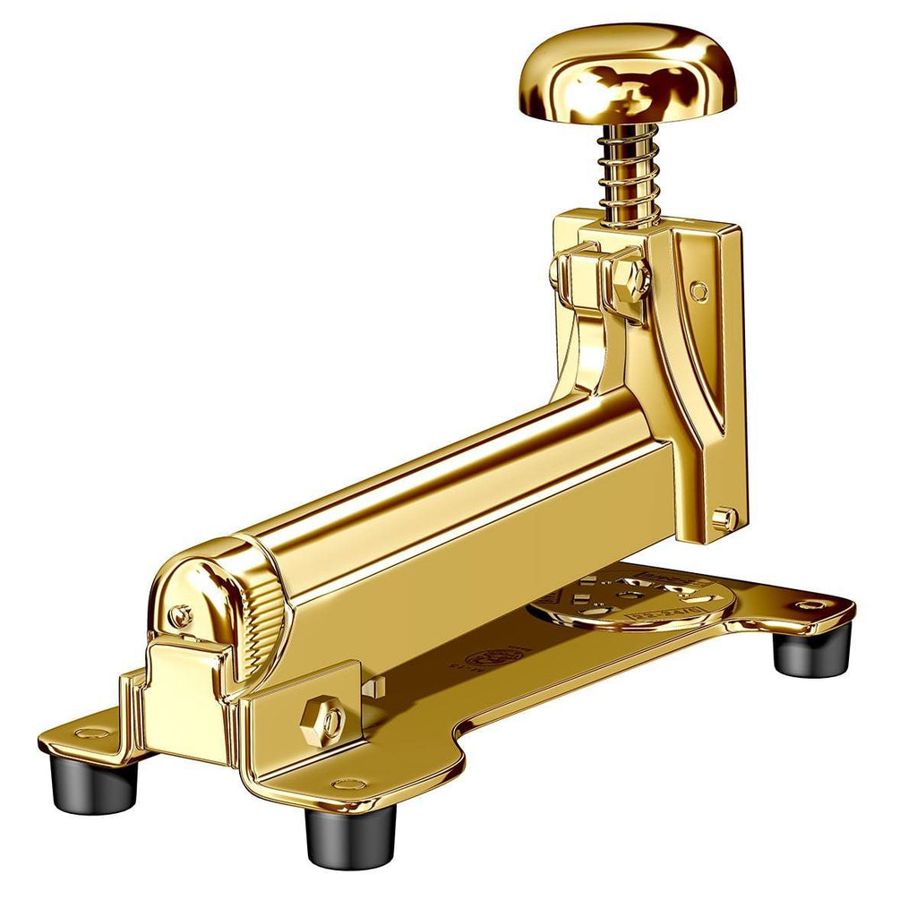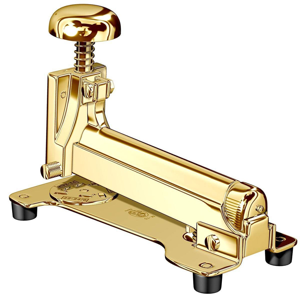 Ein Tischhefter der Extravaganz und Besonderheit dominiert. Der mit 23 Karat vergoldete Tischhefter von El Casco wird mit Werkzeugen für Revolver hergestellt und dies seit 70 Jahren. Das Abbild des Magazins dieses Tischhefters spiegelt den Lauf eines Revolvers wieder und schafft gewisse Historik. Der Tischhefter ermöglicht Ihnen zwischen offener, halboffener oder geschlossener Heftung zu wählen und schützt mit seinen Gummifüßen Ihre Schreibtischoberfläche.
