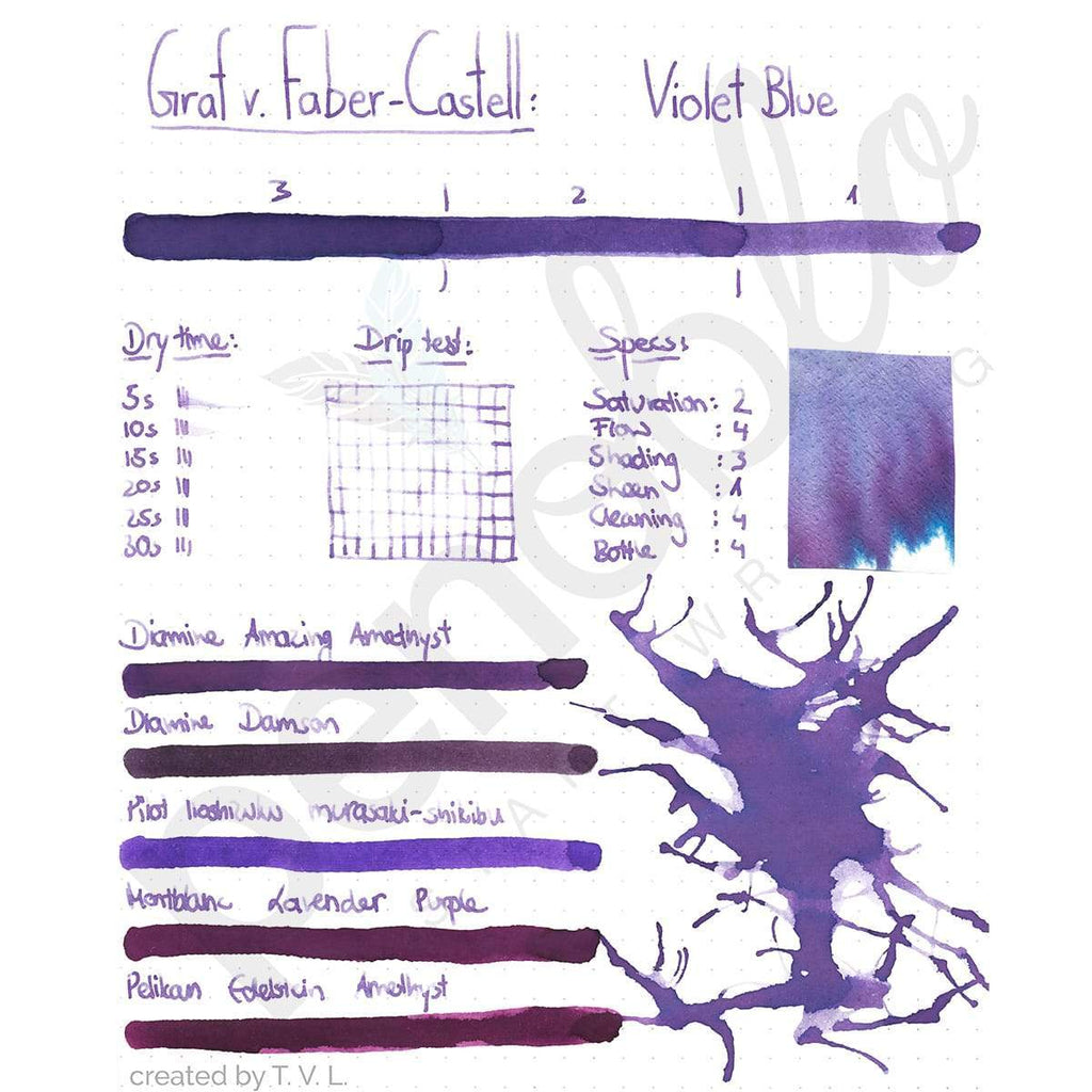 Graf von Faber-Castell Tintenpatronen - Die Tinte ist in einer Faltschachtel mit 6 Tintenpatronen erhältlich. Die Tinte zeichnet sich aus durch ihre einzigartige Rezeptur. Zudem ist diese Tinte wird ohne Partikel und Ruß hergestellt. Dies hat den Vorteil, dass der Tintenleiter nichtmehr verstopft. Ebenfalls hat die Tinte eine der höchsten Farbintensitäten und ist dokumentenecht. Der Endverbraucher kann zwischen vielen von der Natur inspirierten Farben: Carbon Black, Cobalt Blue, Hazelnut Brown, Stone Grey, Moss Green, Garnet Red, Midnight Blue, Deep Sea Green, Royal Blue, Electric Pink, Turquoise oder Burns Orange wählen. Sie zeichnen sich durch eine besondere Farbtiefe aus. Bis auf die Farbe Royal Blue, Cognac Brown und Electric Pink sind die Tinten dokumentenecht.