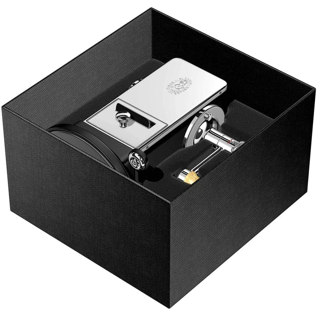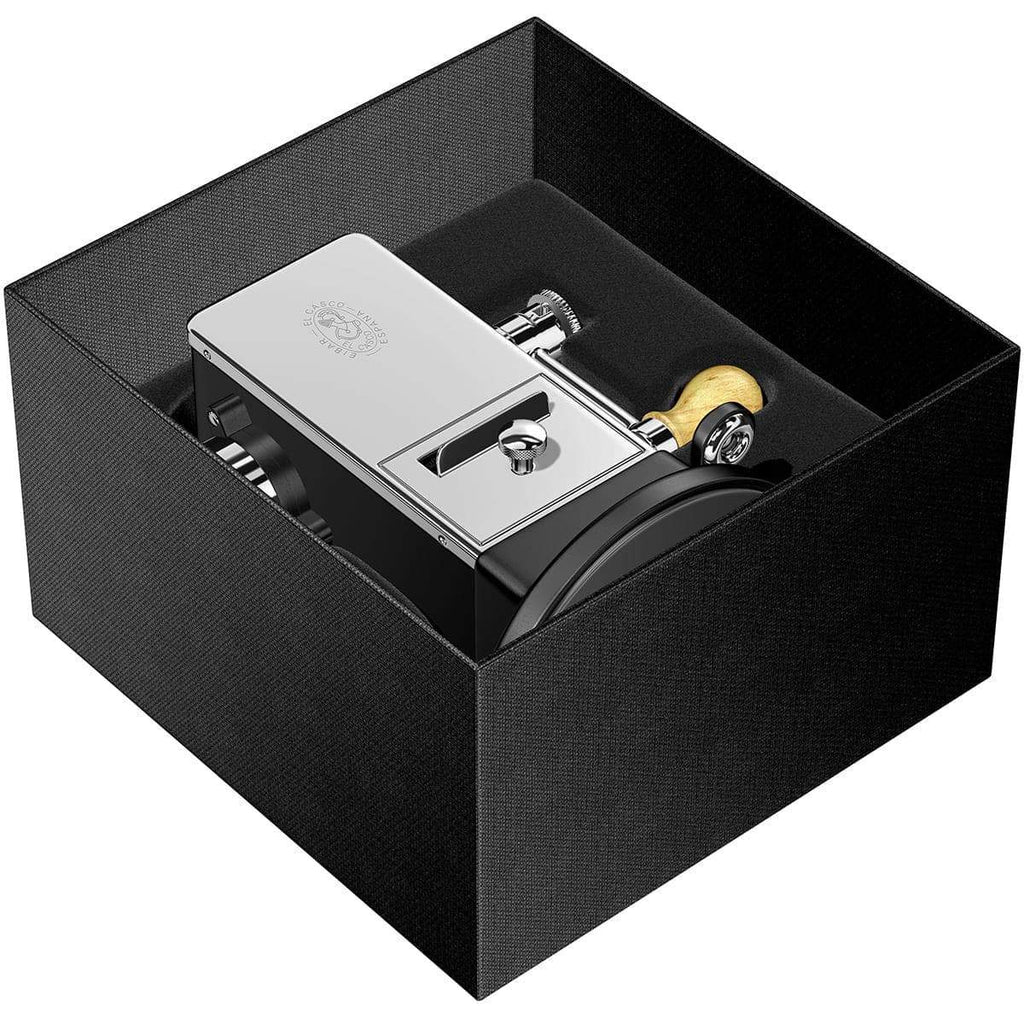 Die Spitzmaschine ist ein echtes Highlight der Kollektion. Der Vakuumsaugfuß gewährleistet eine freie und Oberflächen – schonende Platzierung auf dem Schreibtisch für die Dauer des Spitzvorganges. Am Griff lässt sich die gewünschte Spitzenlänge in vier Stufen regieren. Der letzte Millimeter der Spitze ist am Ende des Spitzvorganges flach, um zu gewährleisten, dass diese beim Schreiben und Zeichnen nicht wegsplittert. Eine Feile an der Schublade dient zum Endgraten der Spitze je nach Verwendungsart des Bleistiftes. Geeignet für Blei- und Farbstifte bis 12mm. 15x14,5x11cmDatenblatt