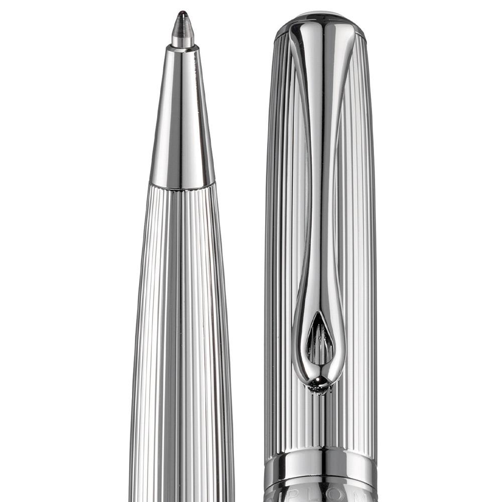 Die chromfarbene Farbe, ergänzt durch silberne Zierelemente und einem Modern Classic Design: Das ist der Diplomat Excellence A2 Kugelschreiber!