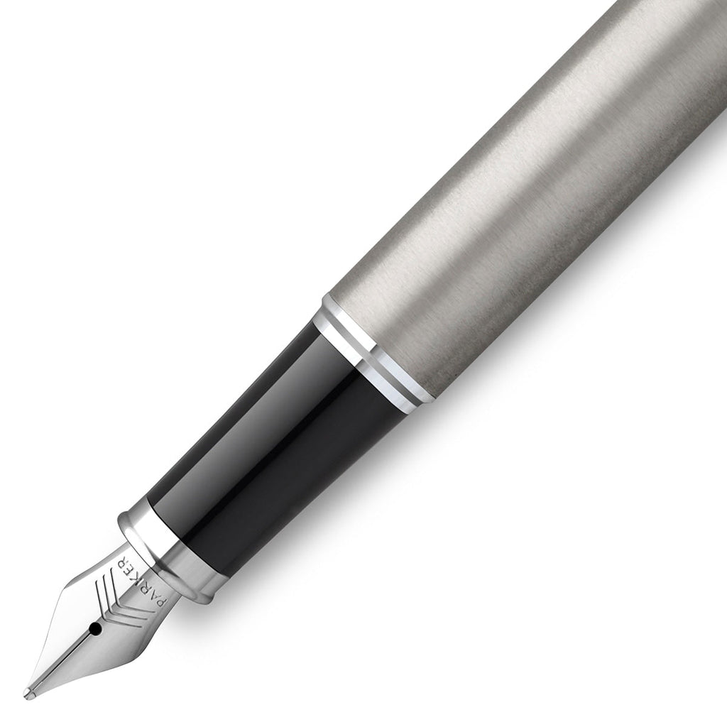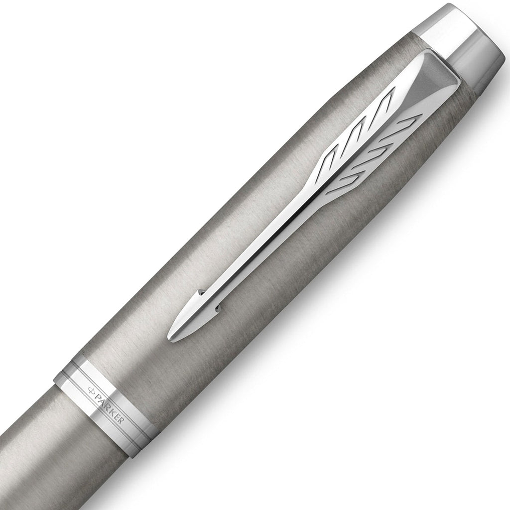 Die silberne Ausführung des Parker IM Edelstahl ist ein hochwertiges, professionelles Schreibgerät, das sich als idealer Partner mit unbegrenztem Potenzial erweist. Die schlanke, konisch zulaufende Form harmoniert perfekt mit innovativen Designelementen aus Edelstahl und Chrom und setzt so einen ausdrucksstarken Akzent.