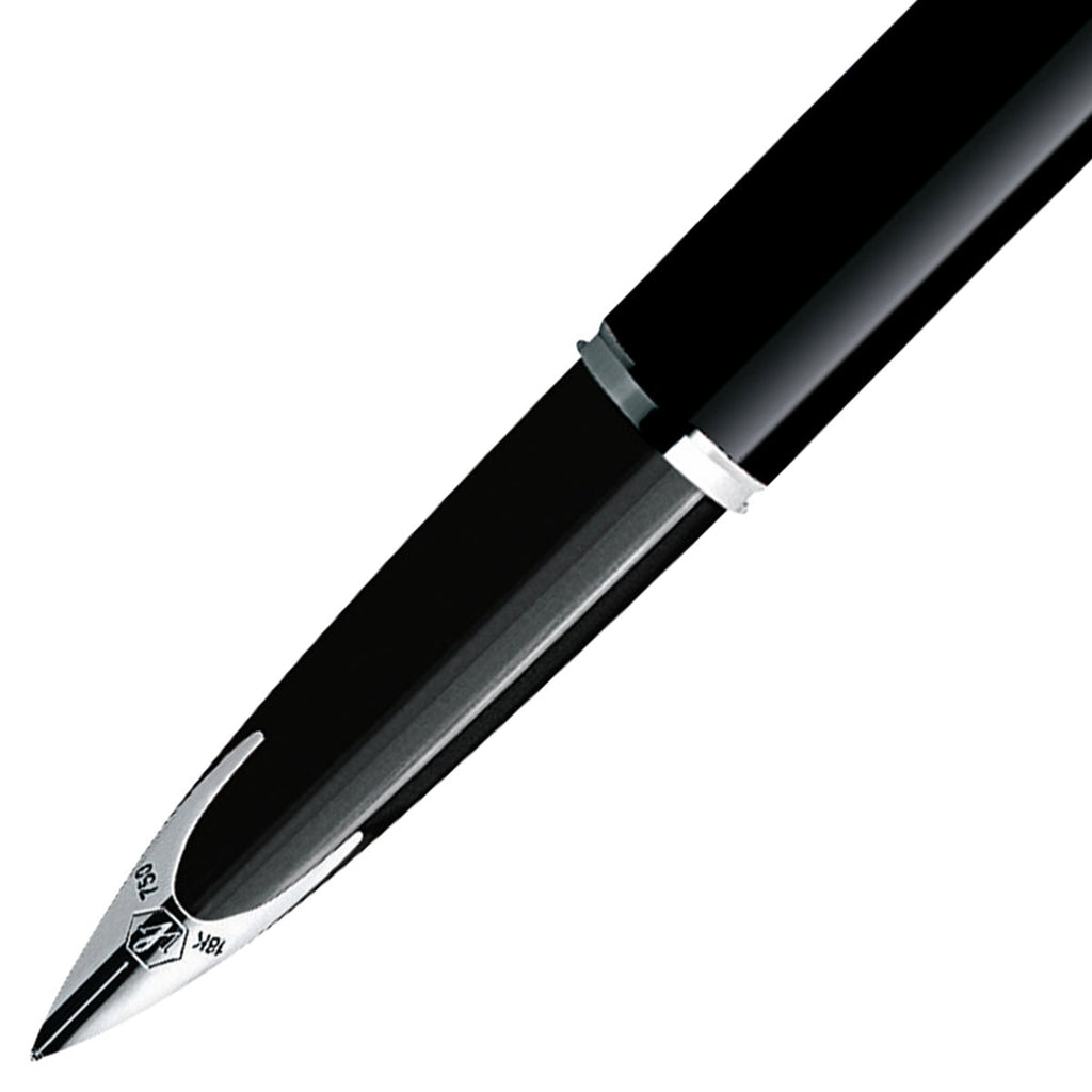 Die schwarze Farbe, ergänzt durch silberne Zierelemente, ausgestattet mit einer 18 Karat Goldfeder: Das ist der Waterman Carène Füllhalter!