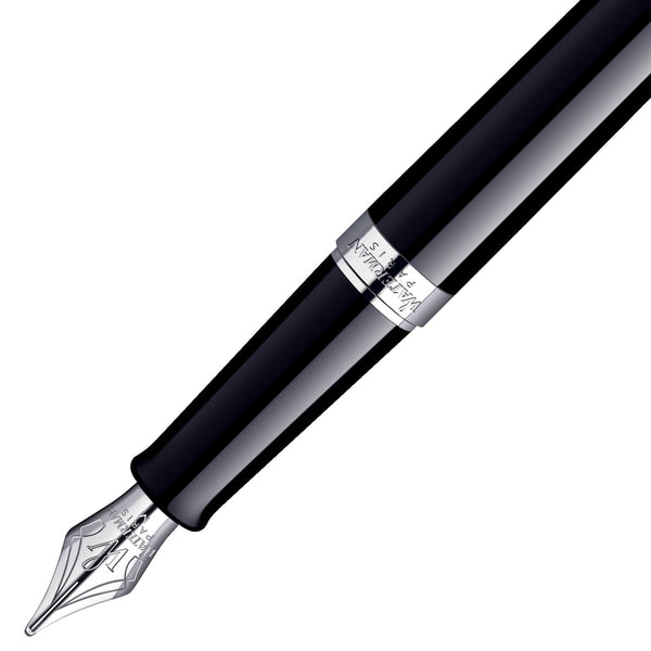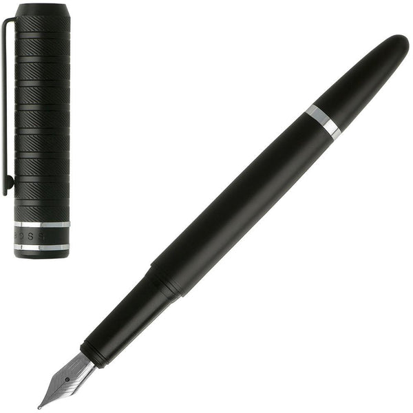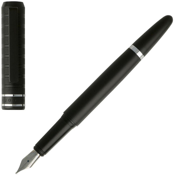 Durch das Aufstecken der Kappe erhält das Schreibgerät seine volle Länge schwarz Edelstahlfeder