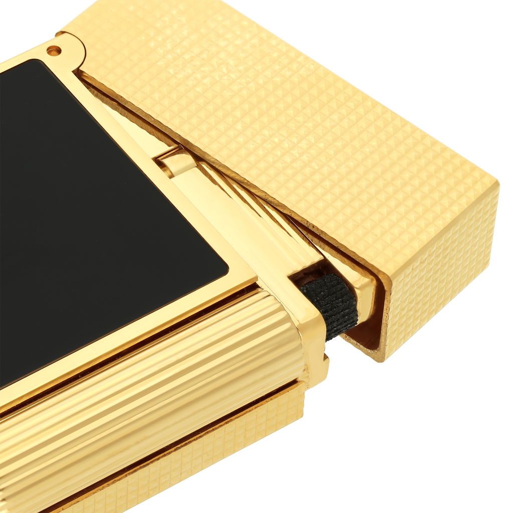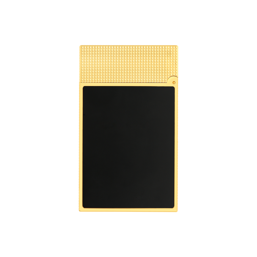 Das S.T. Dupont Ligne 2 Feuerzeug ist ein Meisterwerk der Handwerkskunst, das die ikonische Ästhetik der Ligne 2 Kollektion verkörpert. Mit seinem luxuriösen Gelbgold-Finish und dem mattschwarzen Lack bietet es eine markante, taktile Oberfläche, die durch die präzise MicroDiamond Head-Guillochierung veredelt wird.