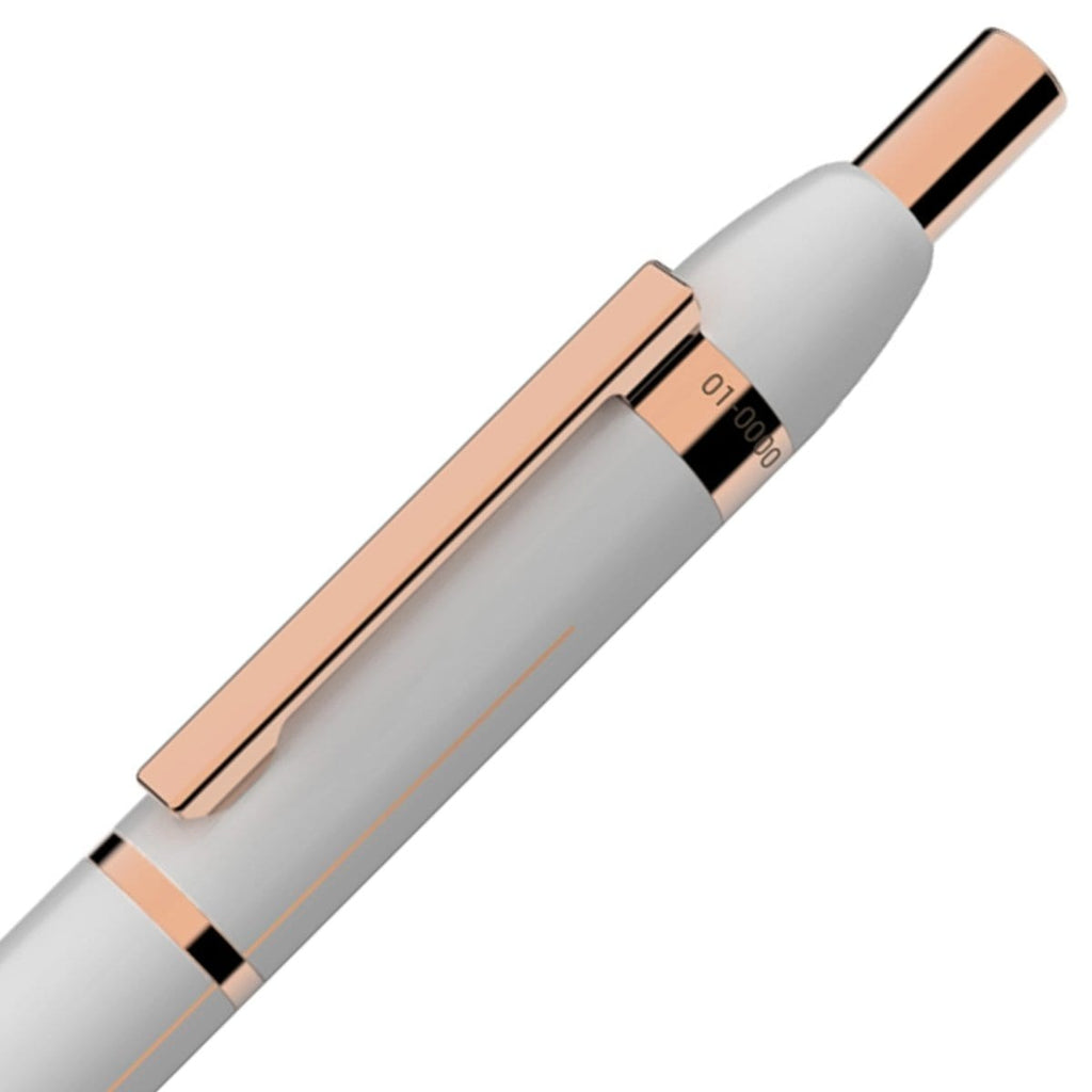 Die weiße Farbe, ergänzt durch platinierte Zierelemente und einem Design im Bauhausstil: Das ist der Otto Hutt Design 03 Kugelschreiber!