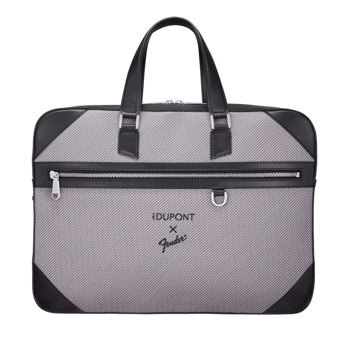 Der S.T. Dupont Dokumentenhalter in Grau ist ein exklusives Accessoire aus der Zusammenarbeit mit Fender. Diese Kooperation vereint die Eleganz und Qualität von S.T. Dupont mit dem markanten Stil von Fender, ideal für design- und musikaffine Kunden.