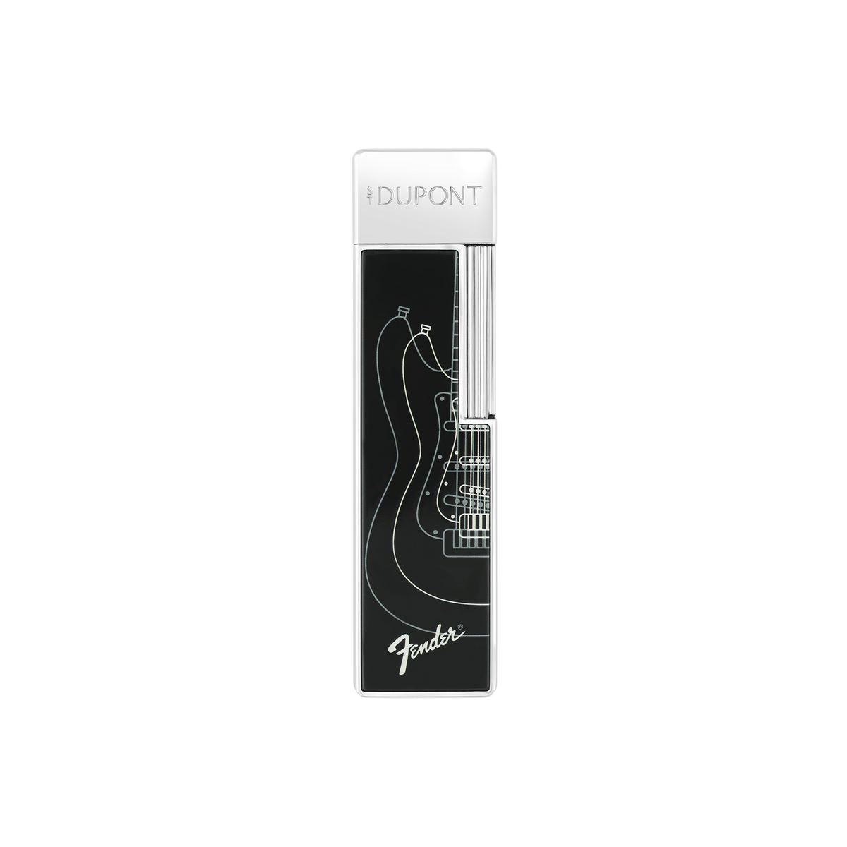 Das S.T. Dupont Feuerzeug Twiggy „Fender“ vereint die Eleganz der Twiggy-Linie mit der ikonischen Ästhetik von Fender. Dieses luxuriöse Accessoire besticht durch seinen schlanken Metallkorpus, der mit einer mehrschichtigen Lackoberfläche veredelt ist. Polierte Metallakzente setzen edle Kontraste und verleihen dem Design Tiefe und Glanz.