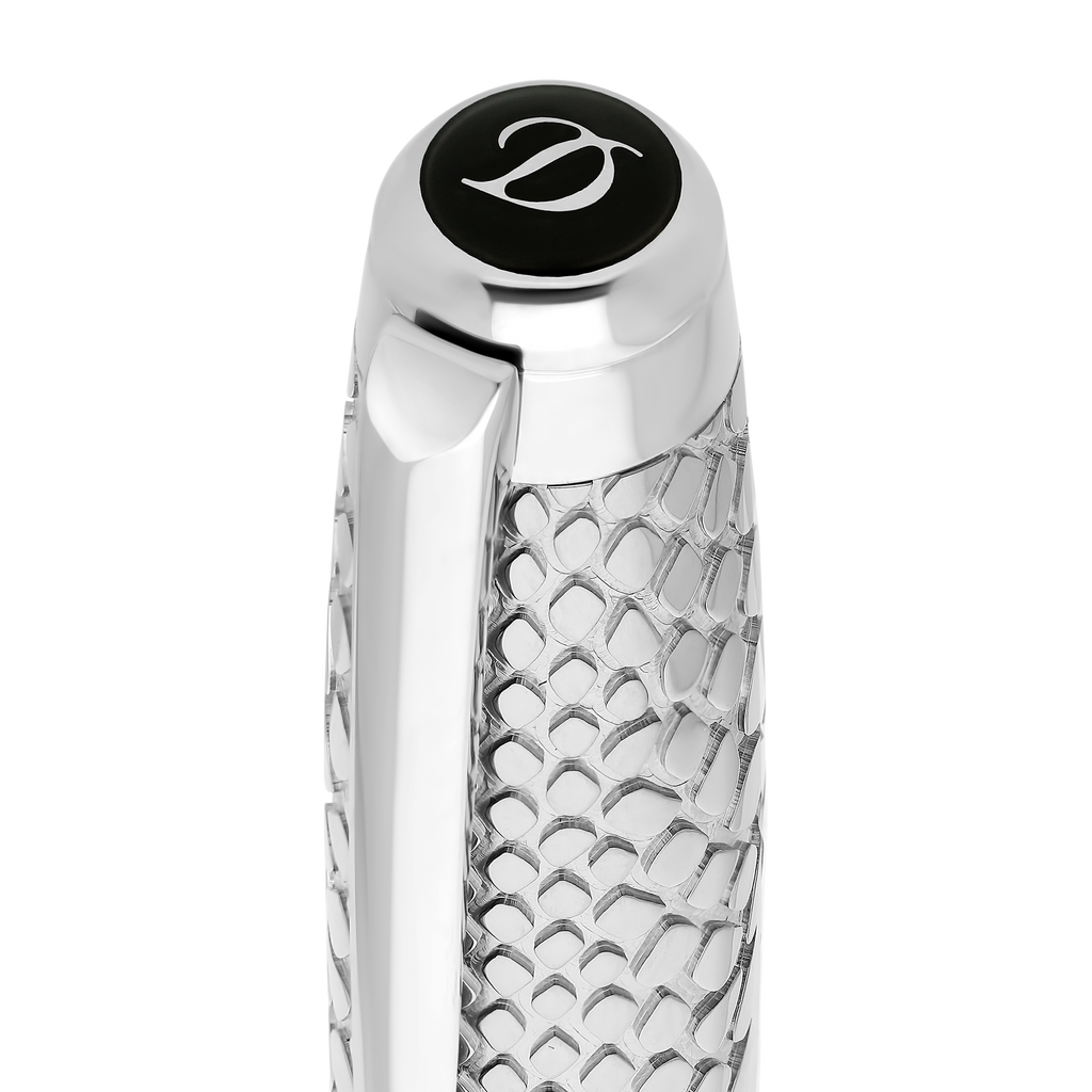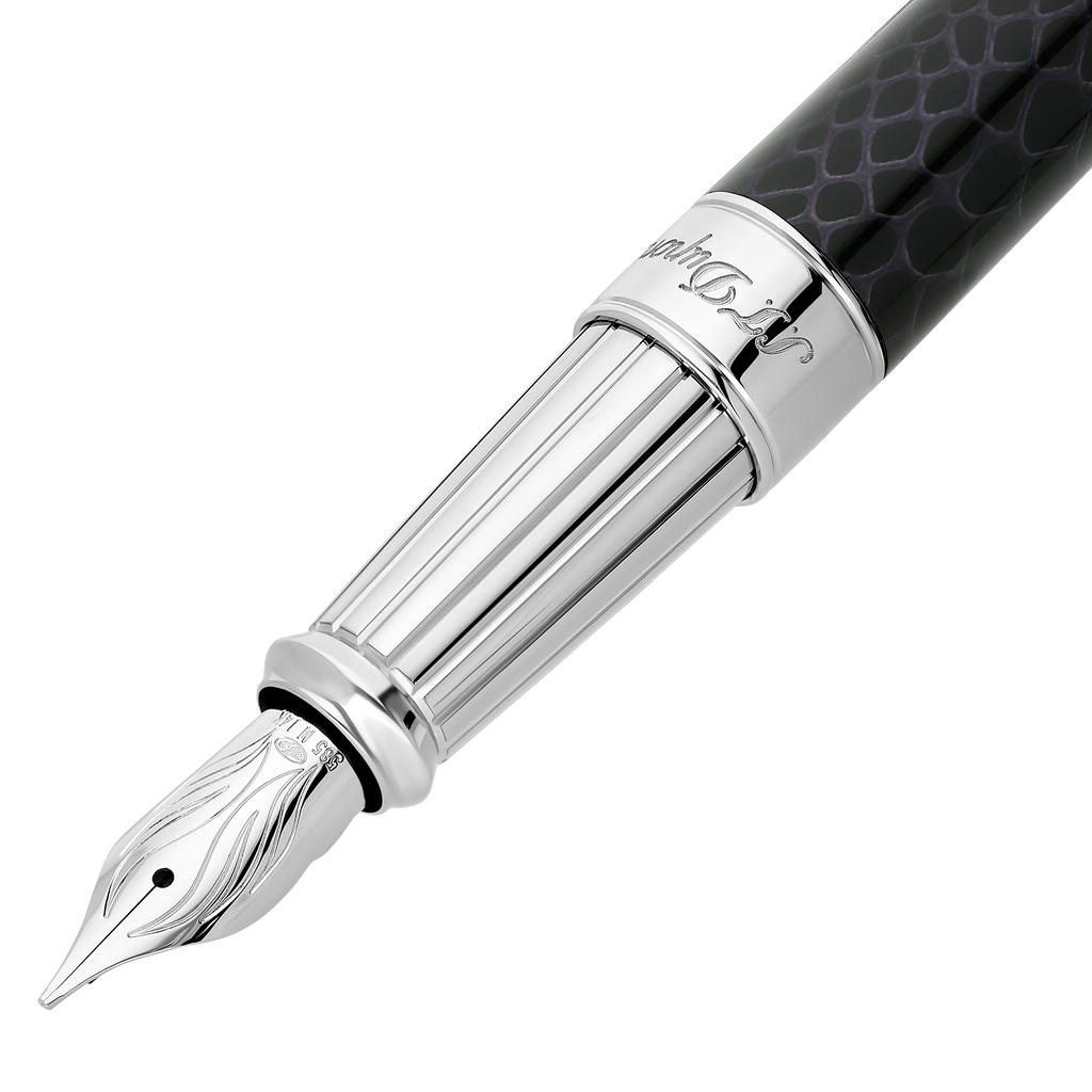 Der S.T. Dupont Füllfederhalter aus der Line D Large Kollektion verkörpert die Essenz französischer Handwerkskunst. Mit seinem tiefschwarzen Natur-Lack und dem eleganten Snake-Design ist er ein wahres Meisterwerk. Die mehrschichtige Lacktechnik, kombiniert mit einem händischen Polierprozess, verleiht ihm eine glänzende und widerstandsfähige Oberfläche.