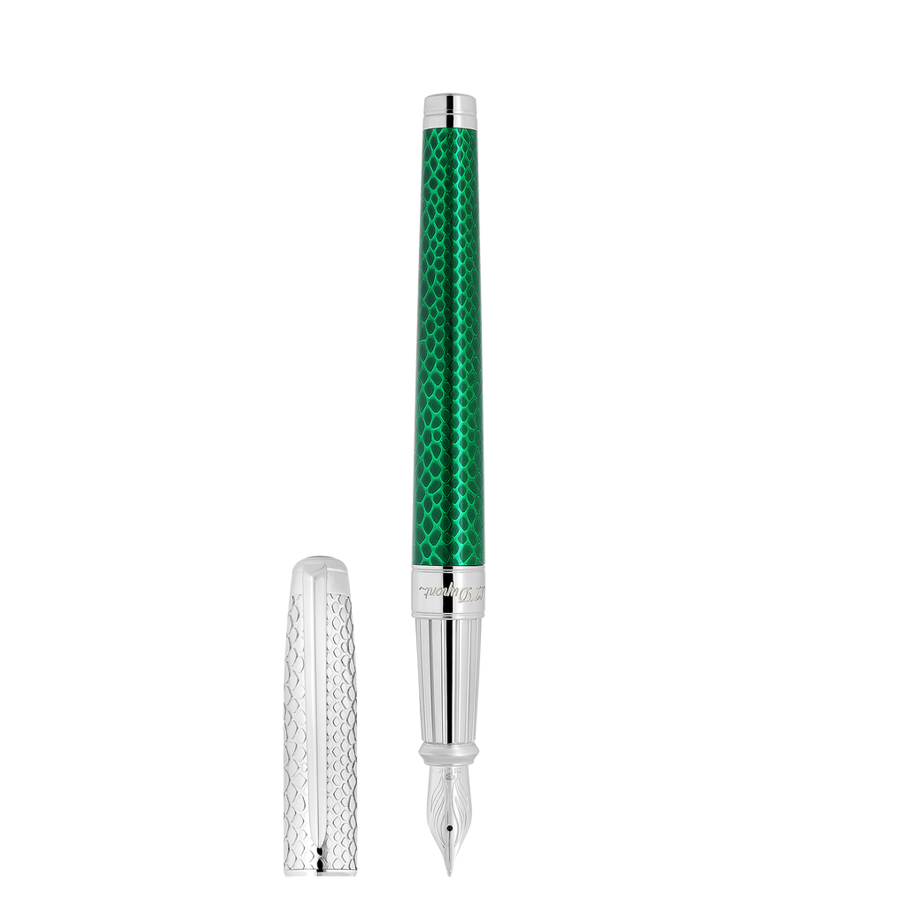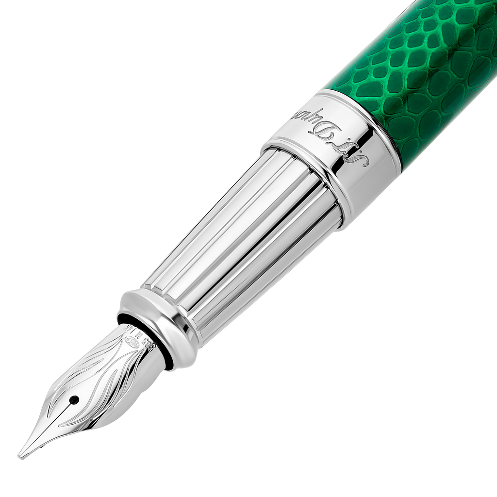 In Frankreich hergestellt, steht dieser Füllfederhalter für die exzellente Verarbeitung und die hohe Präzision, die S.T. Dupont auszeichnen. Das „Snake“-Design ist ein Statement für anspruchsvolle Vielschreiber, die eine charakterstarke, aber seriöse Optik schätzen.