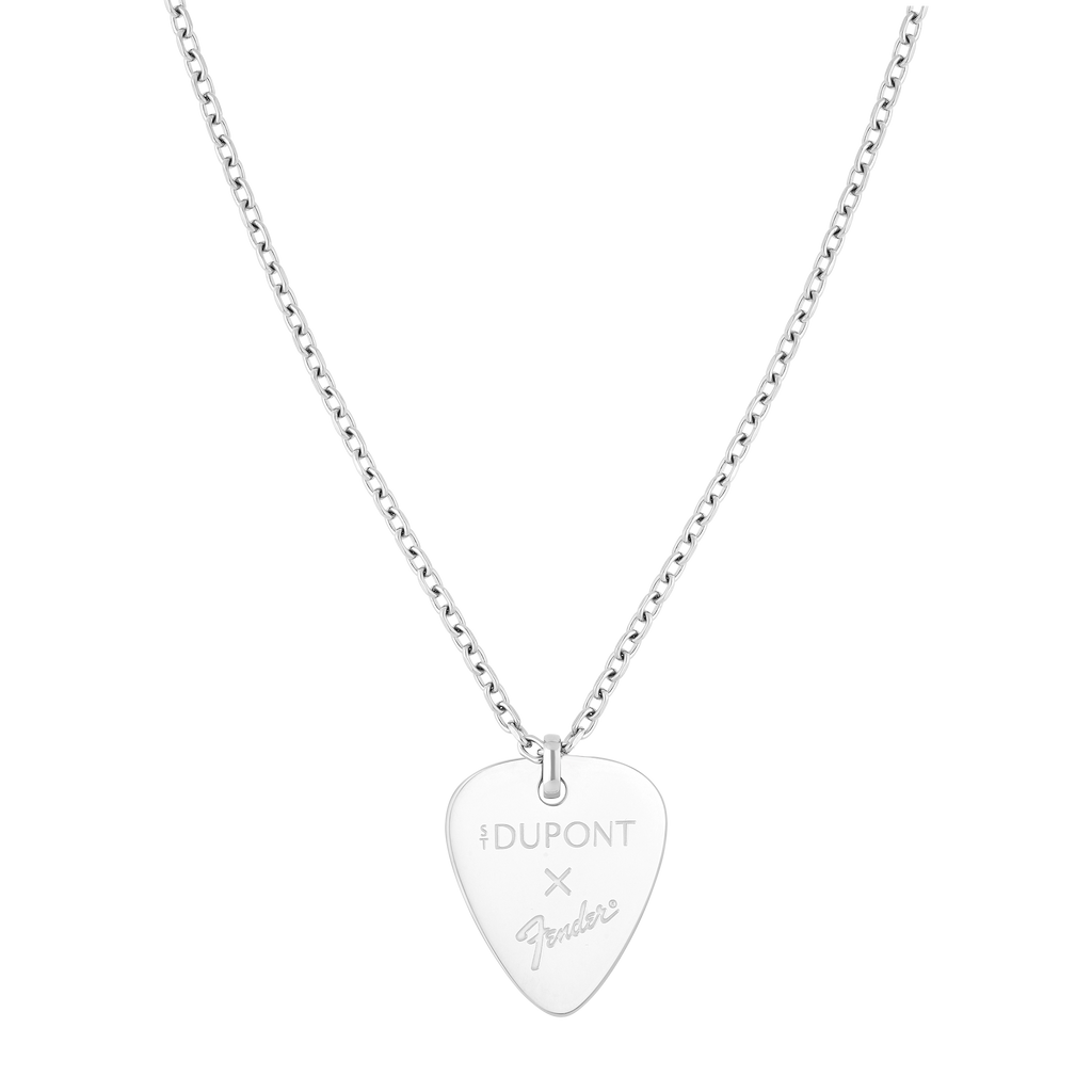 Das S.T. Dupont x Fender Halsband „Mediator“ vereint die exquisite Handwerkskunst von S.T. Dupont mit der ikonischen Ästhetik von Fender. Der Anhänger, in Form eines Gitarren-Plektrums, ist aus hochwertigem Metall gefertigt und mit einem polierten Chrom-Finish versehen, das für seine dauerhafte Brillanz bekannt ist.