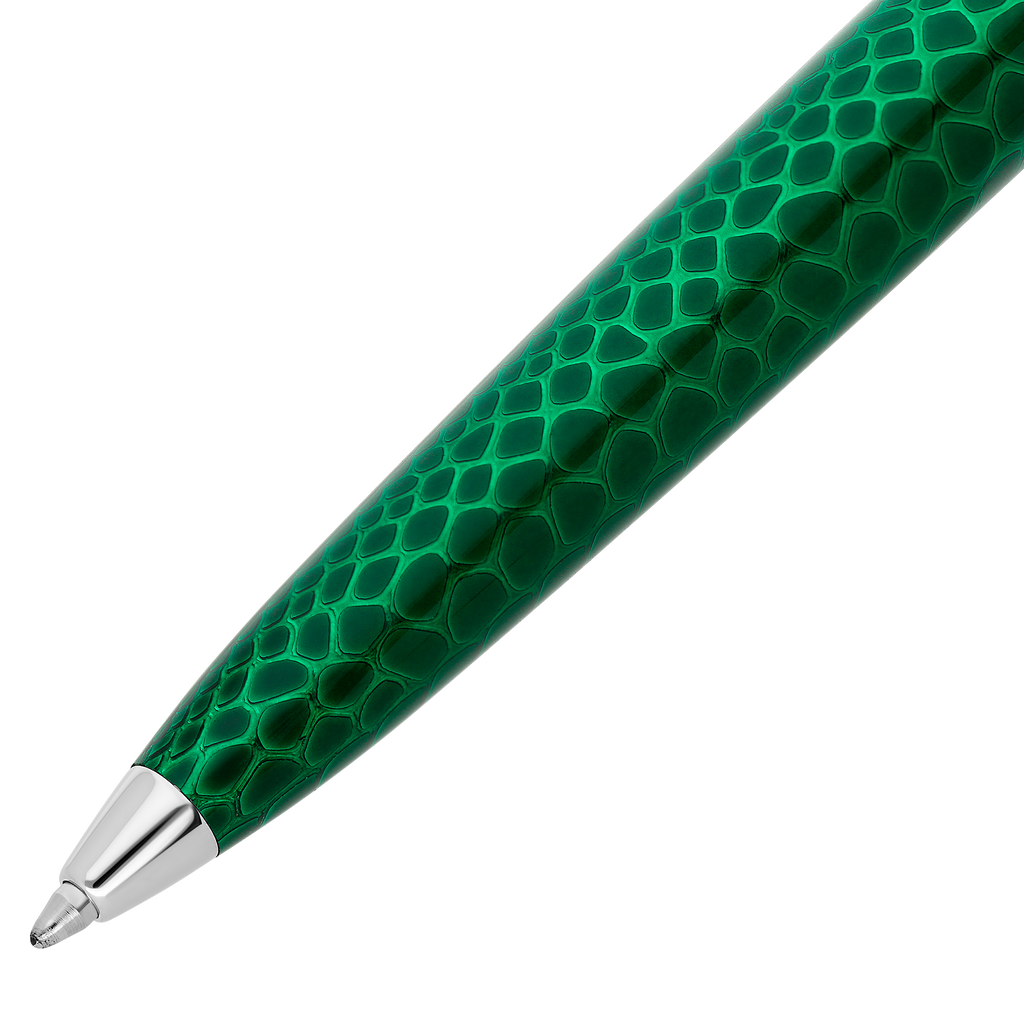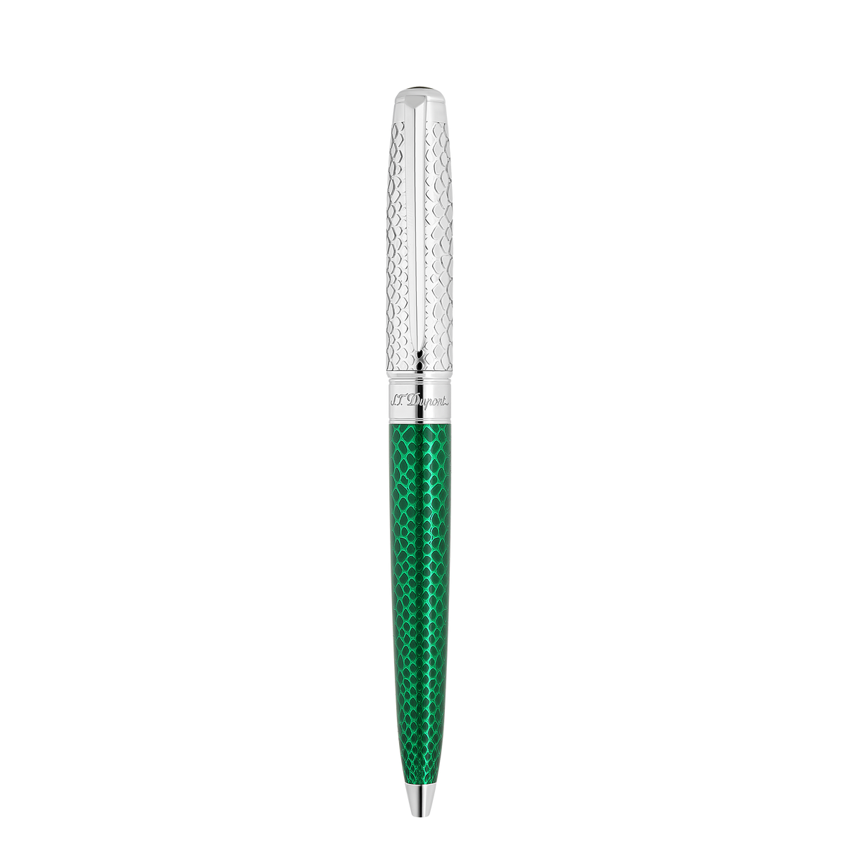 Der S.T. Dupont Kugelschreiber aus der Line D Kollektion verkörpert luxuriöse Handwerkskunst und zeitloses Design. Mit seiner glänzenden grünen Lackoberfläche, die das charakteristische „Snake“-Design zur Geltung bringt, bietet er eine beeindruckende optische Tiefe. Die hochglanzpolierten Metallbeschläge und die präzise Verarbeitung unterstreichen die Qualität, die S.T. Dupont auszeichnet.
