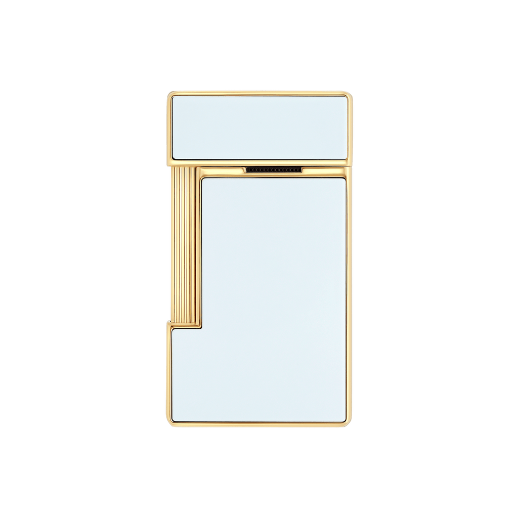 Das S.T. Dupont Slimmy Feuerzeug vereint die ikonische Lackkompetenz der Marke mit einem modernen, urbanen Design. Der Korpus aus Metall ist mit einem hochwertigen, mehrlagigen Weißlack überzogen, der in Kombination mit goldfarbenen Beschlägen einen luxuriösen Kontrast bietet.