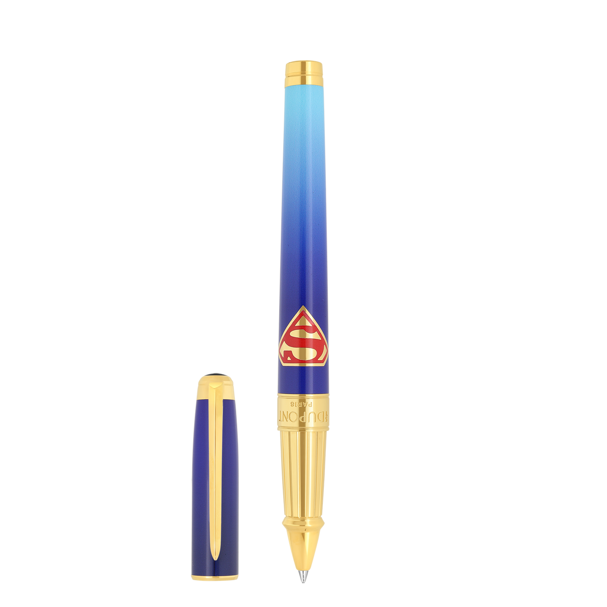 Der S.T. Dupont Tintenroller aus der Line D Eternity Kollektion verkörpert zeitlose Eleganz und moderne Raffinesse. Mit seinem intensiven Blau und dem Superman-inspirierten Design zieht er alle Blicke auf sich. Die präzise gefertigten Metallkorpusse und polierten Metallakzente unterstreichen die luxuriöse Anmutung dieses Schreibgeräts.