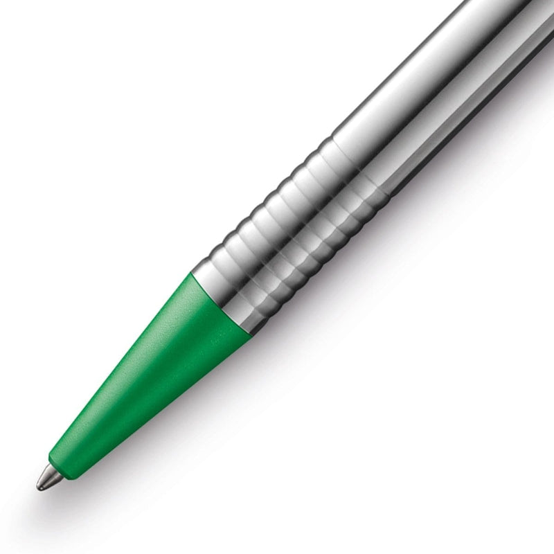 Die grüne Farbe, ergänzt durch silberne Zierelemente und einem kontemporären Design: Das ist der Lamy Logo Kugelschreiber!
