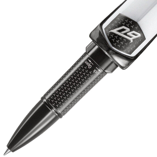 Jedes Schreibgerät dieser Kollektion ist ein Kunstwerk für sich, hergestellt aus hochwertigen Materialien wie lackiertem Aluminium, geschmiedeter Kohlefaser und eloxiertem Aluminium. Ausgestattet mit einer 18-karätigen Goldfeder, eingraviert mit dem unverwechselbaren Lamborghini-Emblem und einem Hochgeschwindigkeits-Power-Push-Füllsystem, bieten diese Stifte ein unvergleichliches Schreibgefühl. Präsentiert in einer eleganten, lackierten Holzkassette zum 60. Jahrestag, wird jeder Füllfederhalter mit zwei Tintenfässern mit individuellen, gebürsteten Aluminium-Logo-Kappen geliefert.