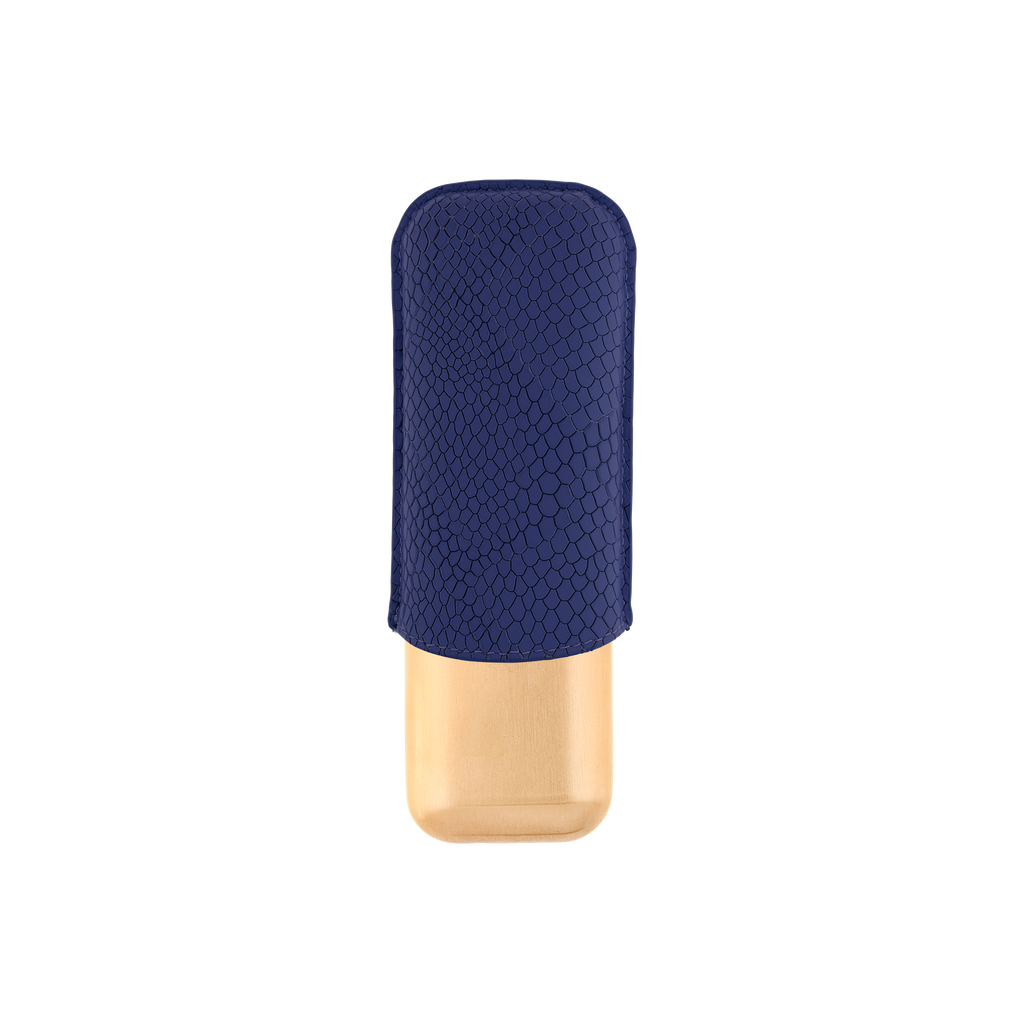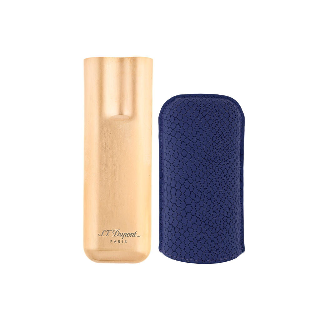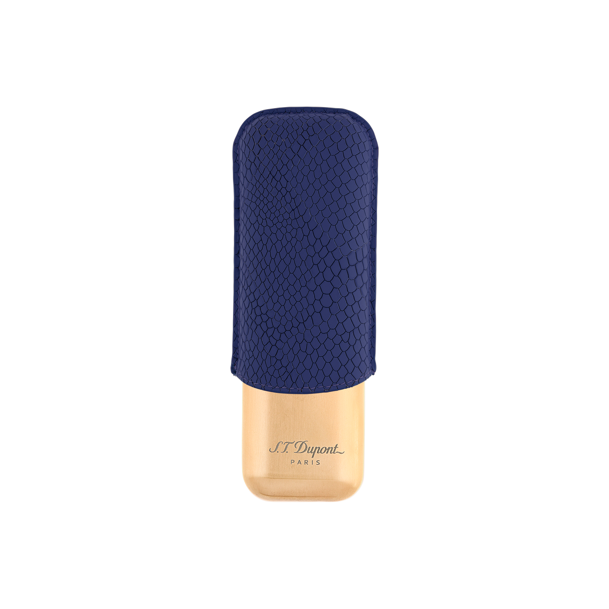 Das S.T. Dupont Zigarrenetui vereint luxuriöse Materialien mit meisterhafter Handwerkskunst. Das tiefblaue Kalbsleder harmoniert perfekt mit der goldfarbenen Metallbasis, die nicht nur optisch beeindruckt, sondern auch für Stabilität sorgt.