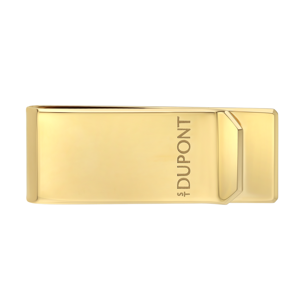 Die S.T. Dupont vergoldete Geldklammer verkörpert französische Luxus-Handwerkskunst in ihrer reinsten Form. Gefertigt aus hochwertigem Metall und veredelt mit einem glänzenden Gold-Finish, bietet sie eine spiegelnde Oberfläche, die Eleganz und Raffinesse ausstrahlt. Die präzise Metallbearbeitung und die saubere Kantenführung sind charakteristisch für die Marke S.T. Dupont.