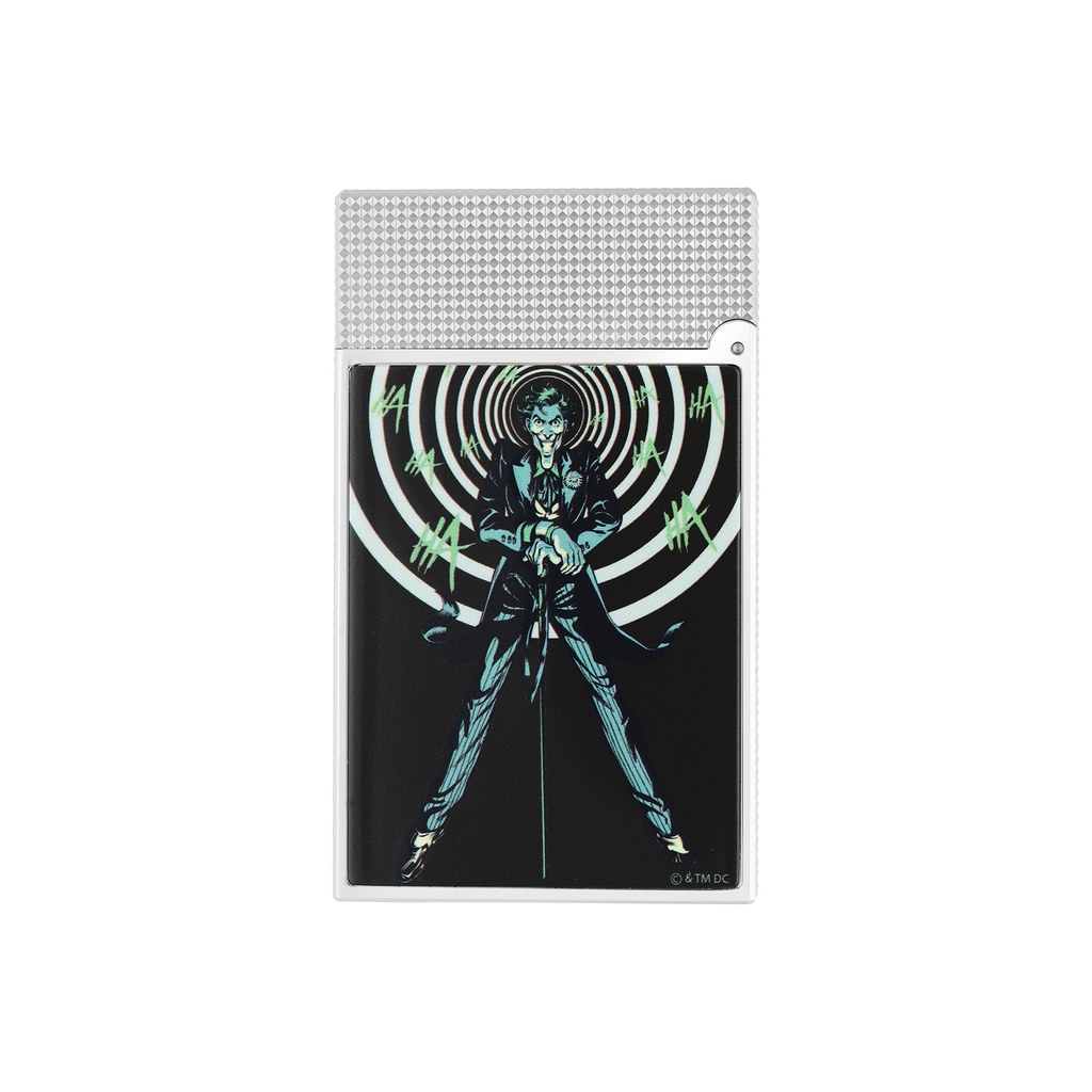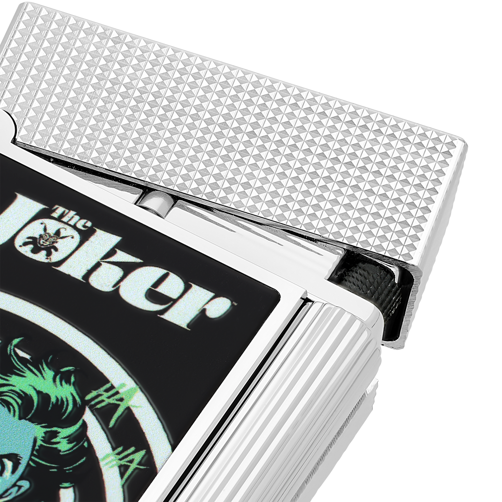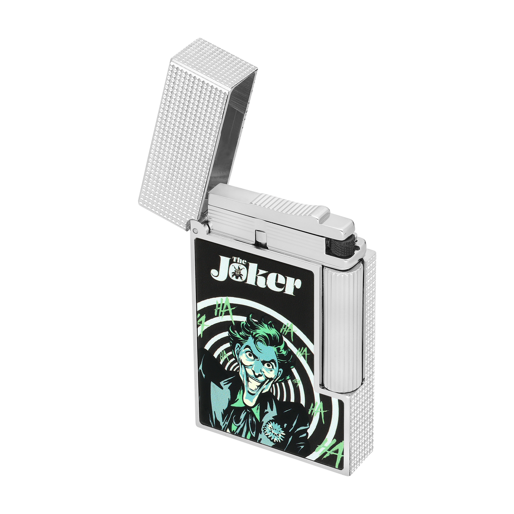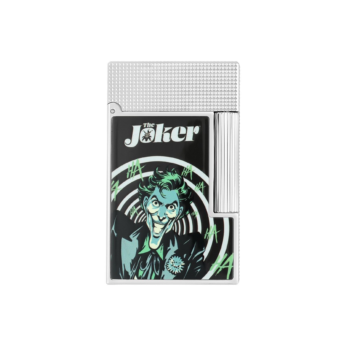 Das S.T. Dupont Ligne 2 Joker Feuerzeug ist ein Meisterwerk der Handwerkskunst, das die ikonische Welt des Jokers in lebhaften Violett- und Grüntönen interpretiert. Der massive Messingkorpus, veredelt mit mehrschichtigem, von Hand poliertem Naturlack, verleiht diesem Feuerzeug eine unvergleichliche Wertigkeit und Beständigkeit.