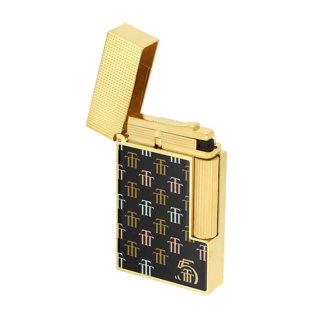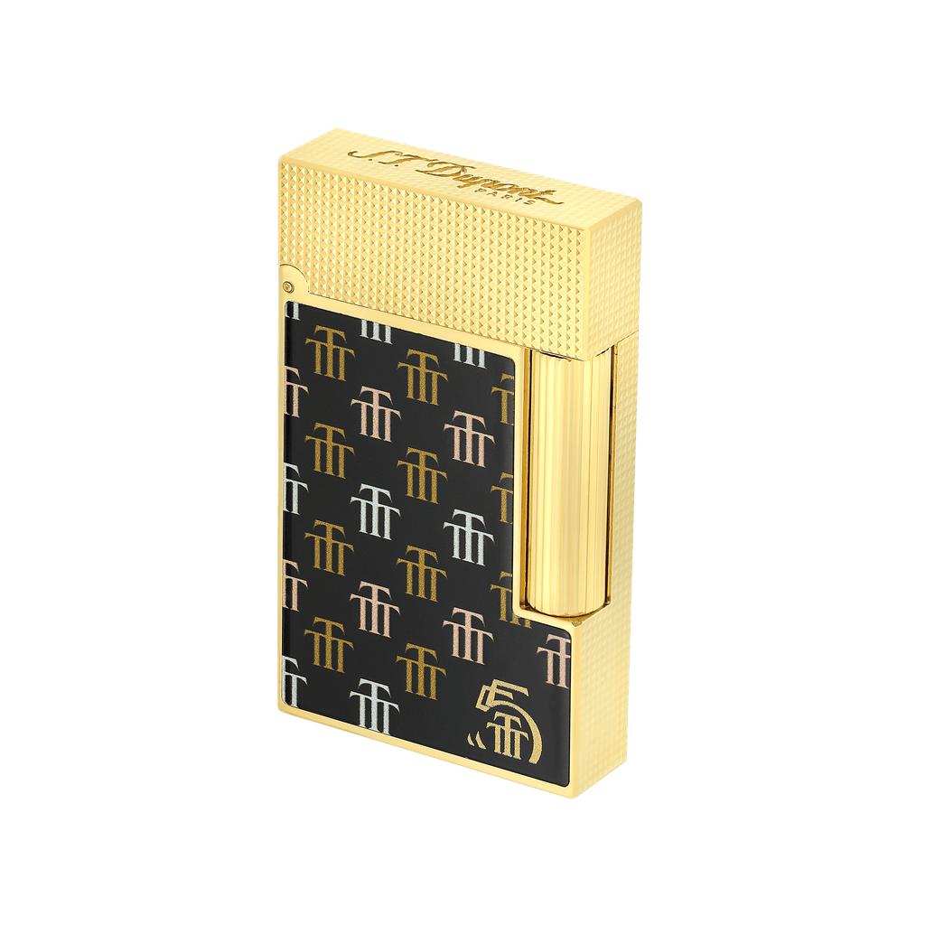 Das S.T. Dupont Feuerzeug Ligne 2 Trinidad ist ein Meisterwerk der Handwerkskunst, das die Eleganz der Trinidad-Kollektion verkörpert. Mit einem massiven Messingkorpus und einer Veredelung aus tiefschwarzem Natur-Lack, akzentuiert durch das goldfarbene Trinidad-Monogramm, bietet es eine luxuriöse Ästhetik.