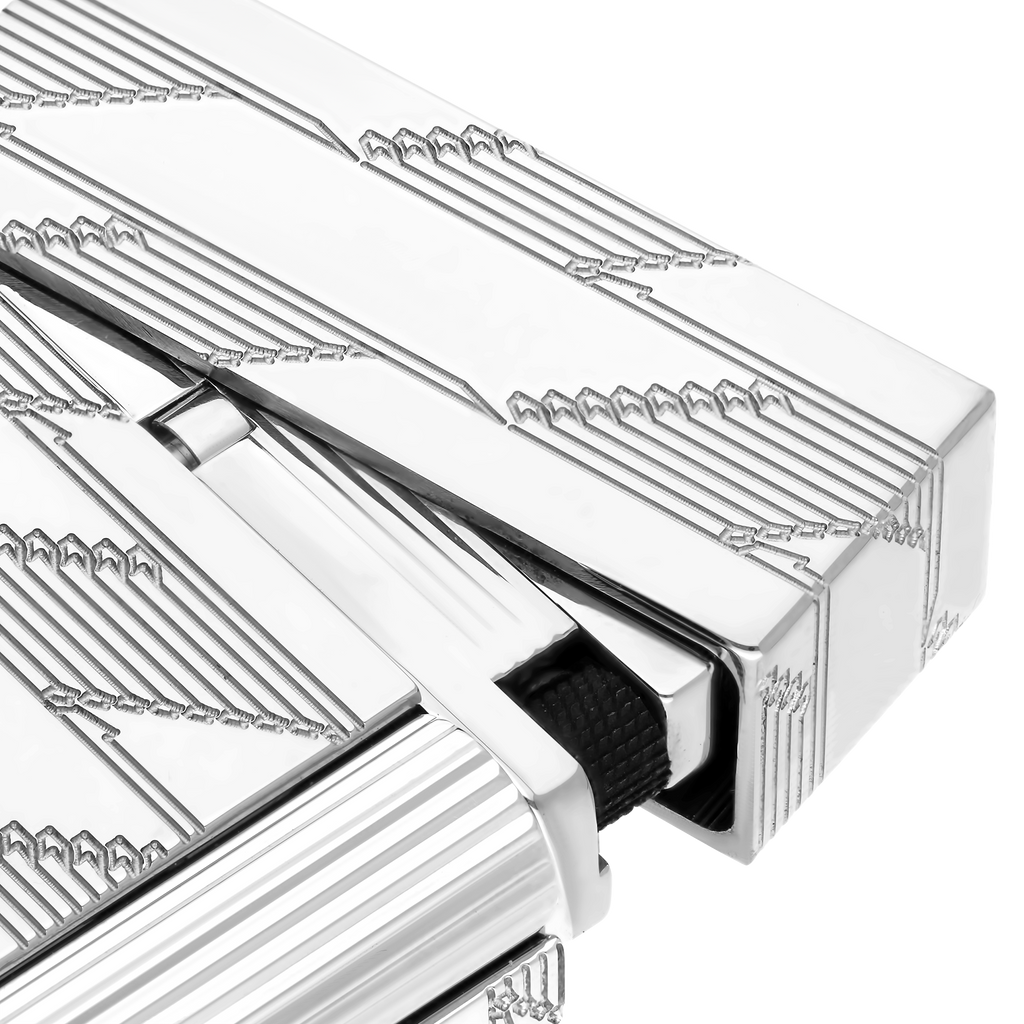 Das S.T. Dupont Ligne 2 “Cling” 1872 Monogram Palladium Feuerzeug verkörpert die Essenz französischer Handwerkskunst und mechanischer Perfektion. Mit einem massiven Messingkorpus, veredelt durch ein glänzendes Palladium-Finish, bietet es eine luxuriöse Haptik und zeitlose Eleganz. Die tief guillochierten Flächen tragen das 1872-Monogramm, das die reiche Geschichte der Maison S.T. Dupont würdigt.
