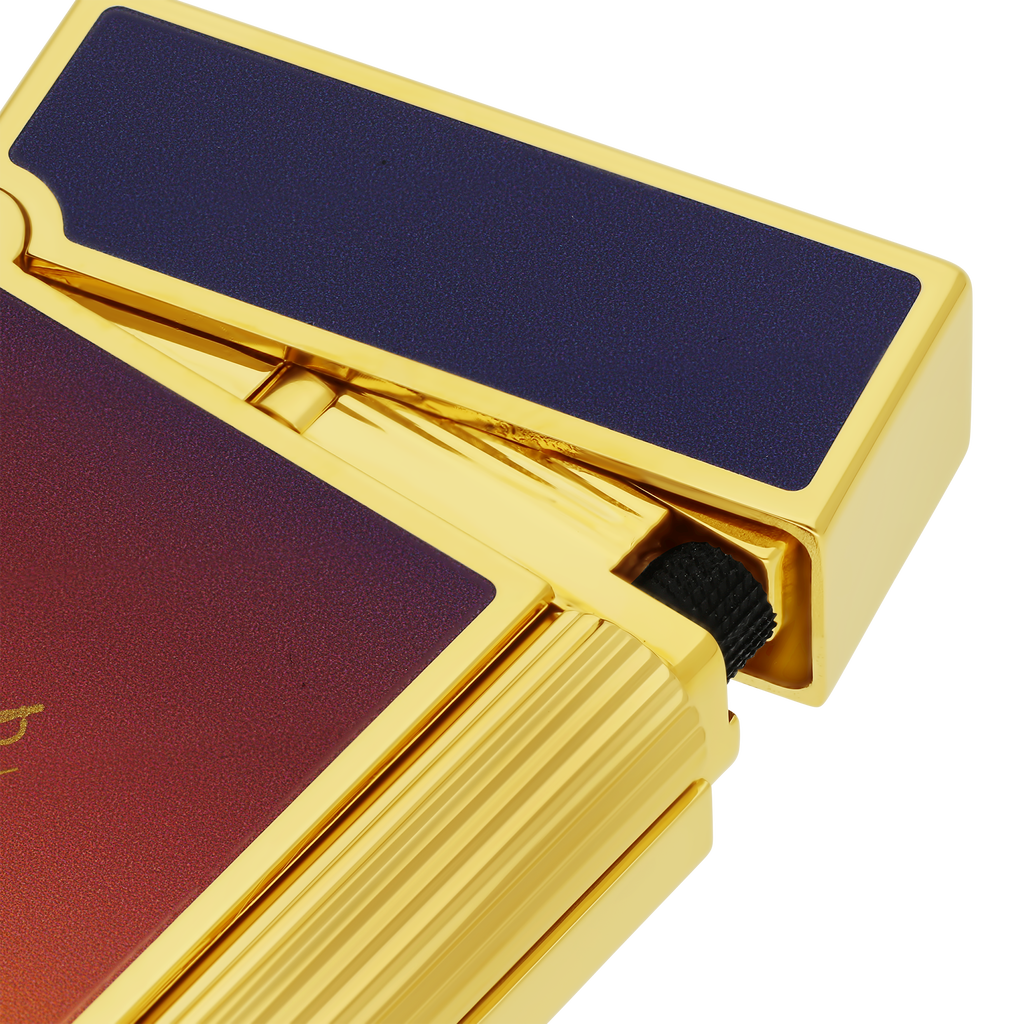Das S.T. Dupont Ligne 2 Feuerzeug in der Montecristo Aurore Edition vereint französische Handwerkskunst mit der ikonischen Zigarrenkultur. Der von Hand aufgetragene Naturlack zeigt einen faszinierenden Farbverlauf, inspiriert von den warmen Tönen der Morgendämmerung. Die goldfarbenen Metallelemente ergänzen das Design harmonisch und verleihen dem Feuerzeug eine luxuriöse Ausstrahlung.