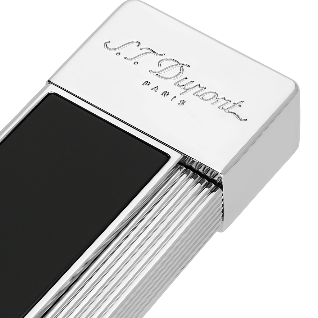 Das S.T. Dupont Twiggy Feuerzeug vereint luxuriöse Materialien mit einer schlanken, modernen Ästhetik. Die Kombination aus tiefschwarzem Lack und kühlen Chromakzenten verleiht diesem Modell eine zeitlose Eleganz, die sowohl im Alltag als auch bei besonderen Anlässen überzeugt.