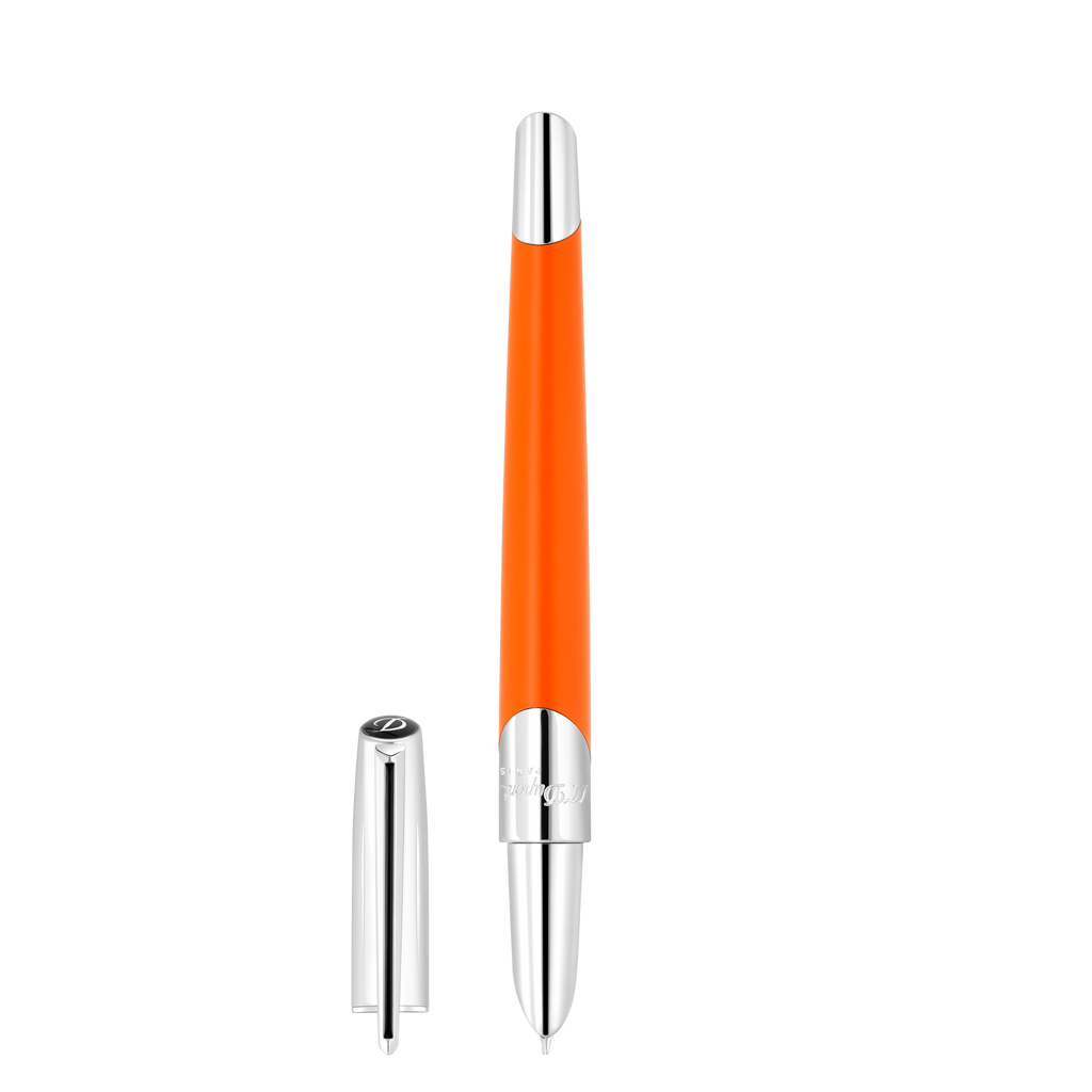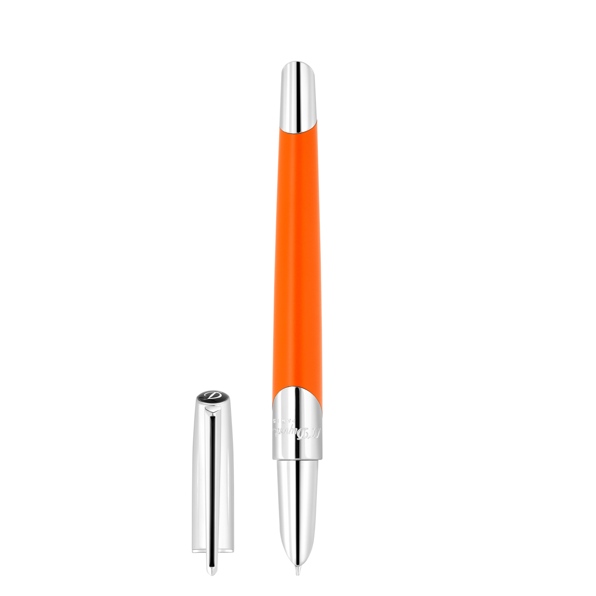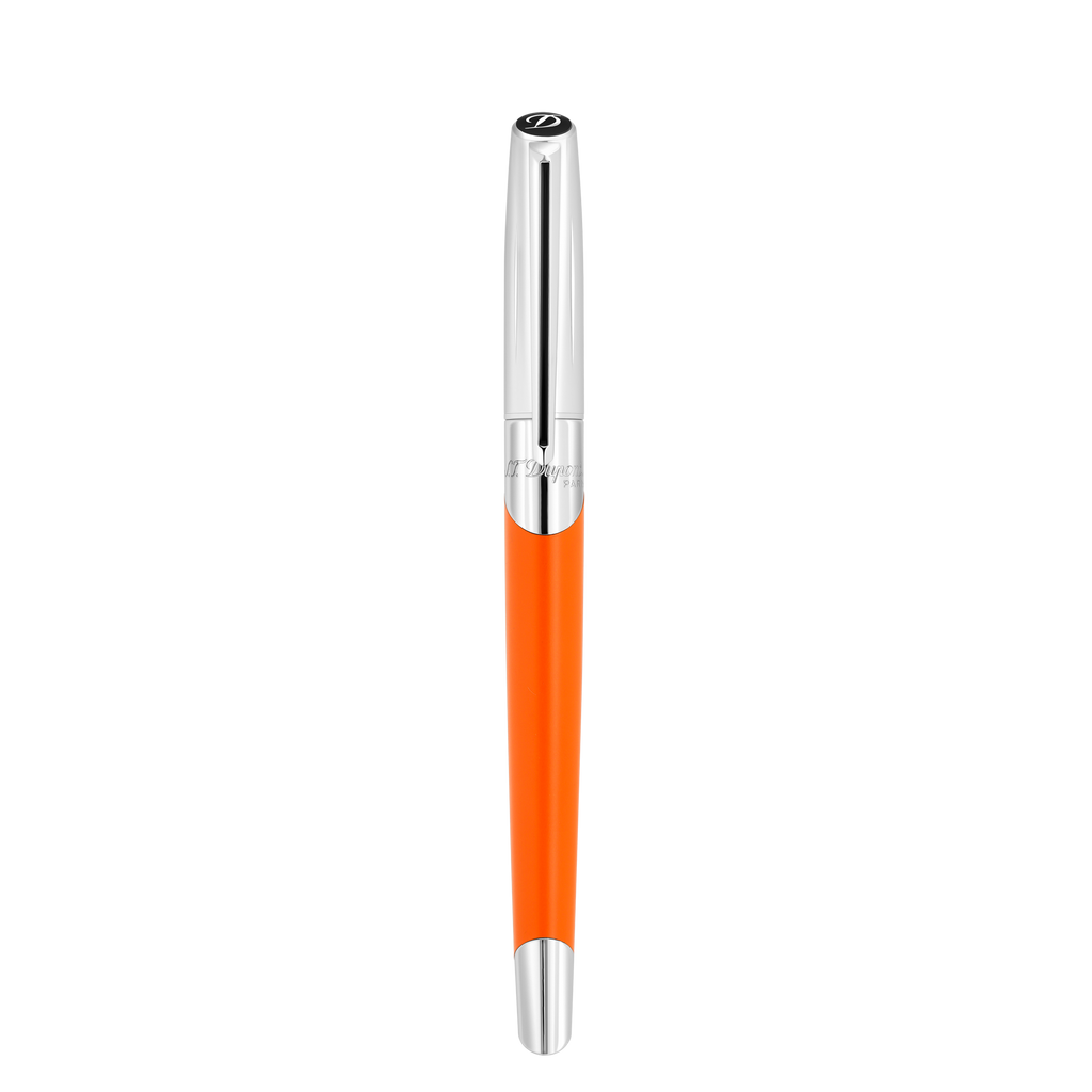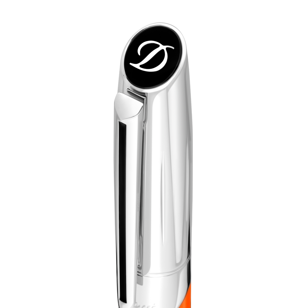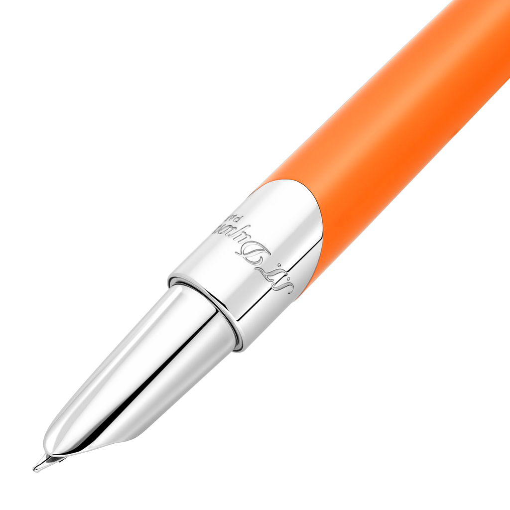 Der S.T. Dupont Défi Füllfederhalter in kräftigem Orange verkörpert die dynamische, sportliche Ästhetik der Défi-Kollektion. Mit seiner robusten Metallkonstruktion und der hochwertigen Lackierung bietet er nicht nur visuelle Anziehungskraft, sondern auch dauerhafte Qualität.