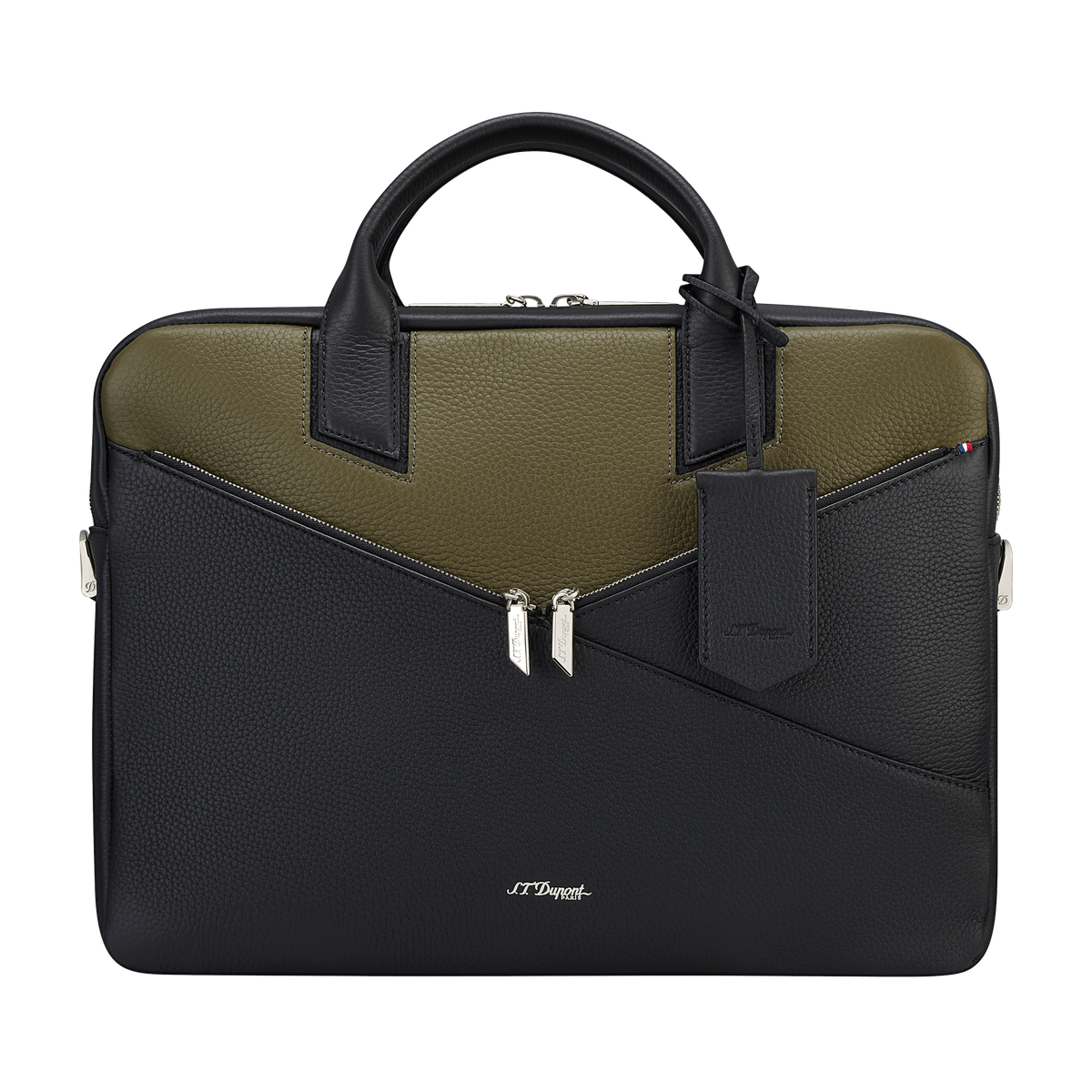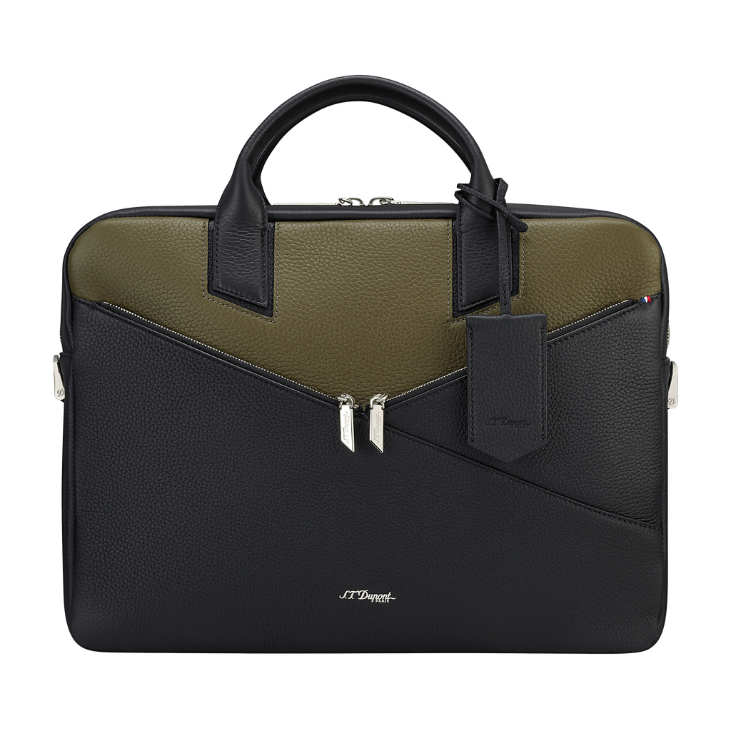Die S.T. Dupont Neo Capsule Aktentasche verkörpert die perfekte Symbiose aus traditioneller Handwerkskunst und modernem Design. Gefertigt aus hochwertigem Leder in einer eleganten Khaki/Schwarz-Kombination, bietet sie eine luxuriöse Haptik und zeitlose Ästhetik.