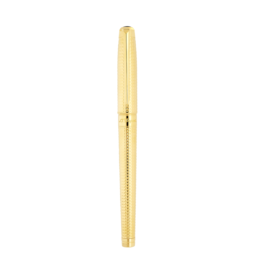 Die Größe „Large“ bietet eine ausgewogene Ergonomie, die sowohl Komfort als auch Präsenz in der Hand gewährleistet. Der abnehmbare Kappenmechanismus und die Kompatibilität mit S.T. Dupont Rollerball-Minen sorgen für ein sanftes, sauberes Schreibverhalten. Verpackt in einer repräsentativen Präsentationsbox, ist dieser Tintenroller das ideale Geschenk für Kenner und Liebhaber luxuriöser Schreibgeräte.