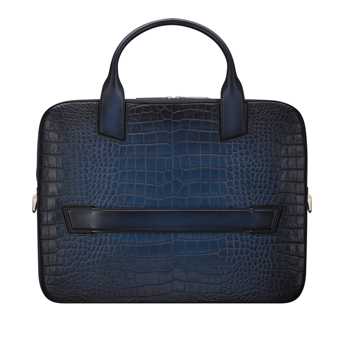 Obwohl spezifische Materialdetails nicht verfügbar sind, ist die Marke bekannt für ihre präzise Verarbeitung und langlebigen Metallbeschläge. Die dezente Markeninszenierung und die funktionale, elegante Linienführung machen diese Aktentasche zu einem idealen Begleiter für den stilbewussten Geschäftsmann.