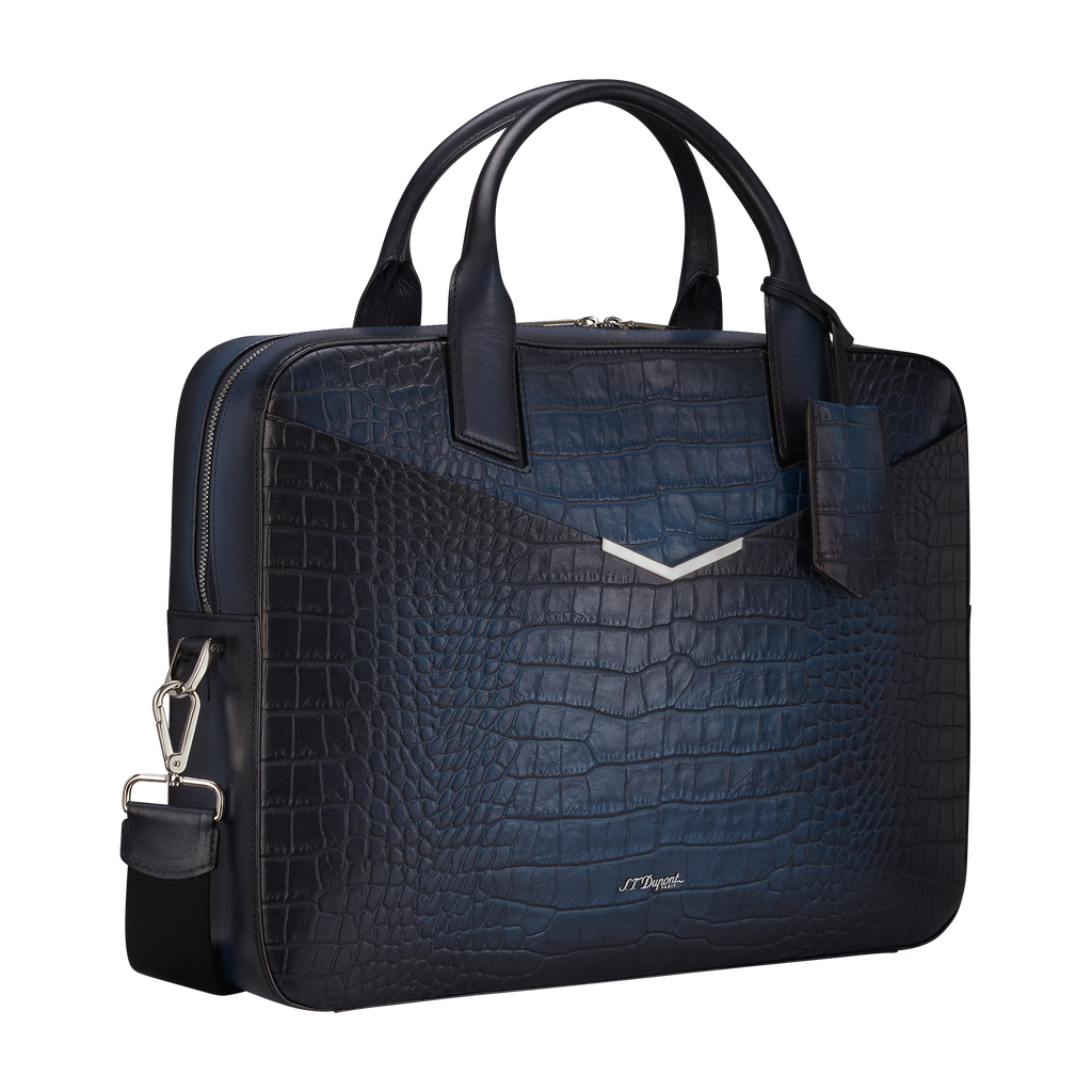 Die S.T. Dupont Aktentasche verkörpert die Essenz luxuriöser Lederwaren, die für anspruchsvolle Business-Kunden konzipiert sind. Diese Tasche steht für die hohe Fertigungsqualität, die S.T. Dupont auszeichnet, und bietet eine elegante, zeitlose Anmutung, die in formellen Geschäftsumgebungen perfekt zur Geltung kommt.