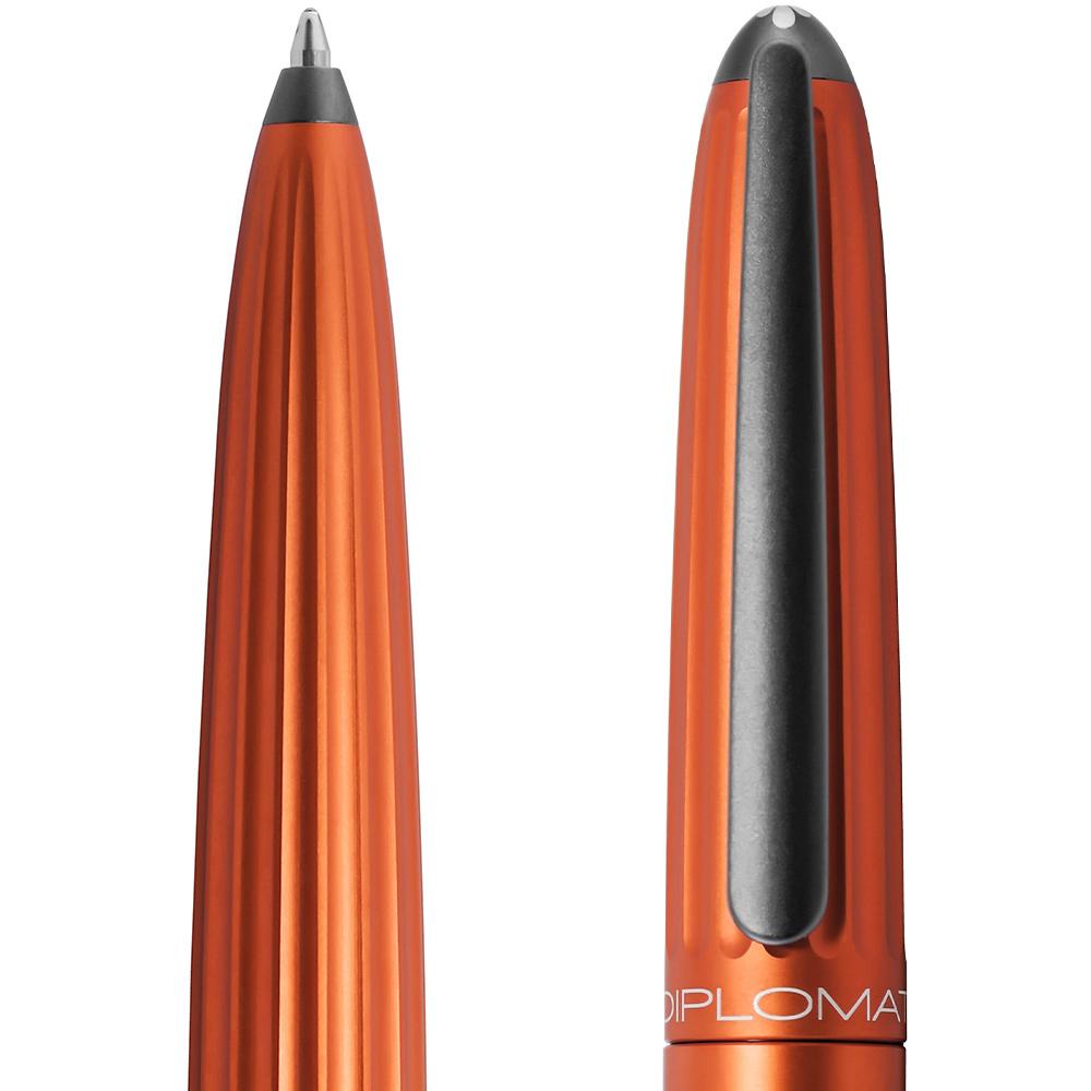 Der Diplomat Aero Kugelschreiber in orangen wird mit schwarzen Zierelementen vervollständigt und hat ein kontemporäres Design.