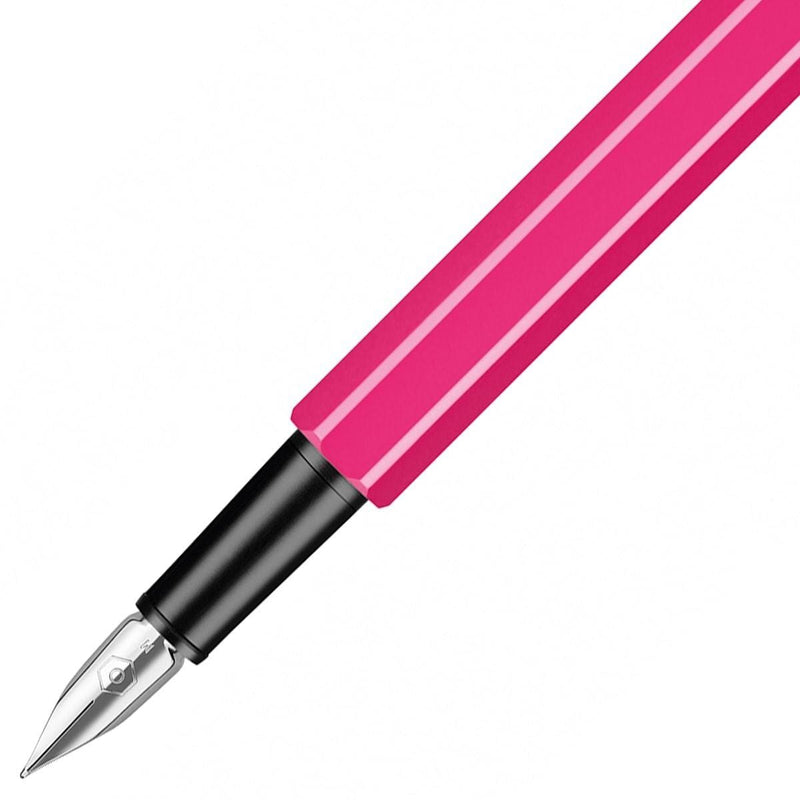 Der 849 Metall Füllfederhalter zeichnet sich durch sein modernes Design aus, das die kontemporäre Designästhetik des 21. Jahrhunderts einfängt. Das Herz des Füllers ist eine verlässliche Edelstahlfeder, die dem Schreibgerät seinen zuverlässigen Charakter verleiht und gezielt für Schreibanfänger entwicklet wurde. Der 849 Metall Füllhalter wird mit Patronen genutzt. Dadurch ist ein schnelles, unproblematisches Nachfüllen auch unterwegs möglich. Alternativ kann er mit einem Tintenkonverter genutzt werden. Durch die gesteckte Kappe lässt sich das Schreibgerät einfach und schnell öffnen, und schnell für Aufschriebe zum Einsatz bereit. Des Weiteren ist der Füllhalter mit einem Edelharzgriffstück ausgestattet. Die Größe des Füllfederhalters trifft genau die Mitte und eignet sich daher für allerlei Hände und Handhaltungen. Des Weiteren eignet sich der 849 Metall dank seines leichten Gewichts auch für längere Schreibsitzungen.