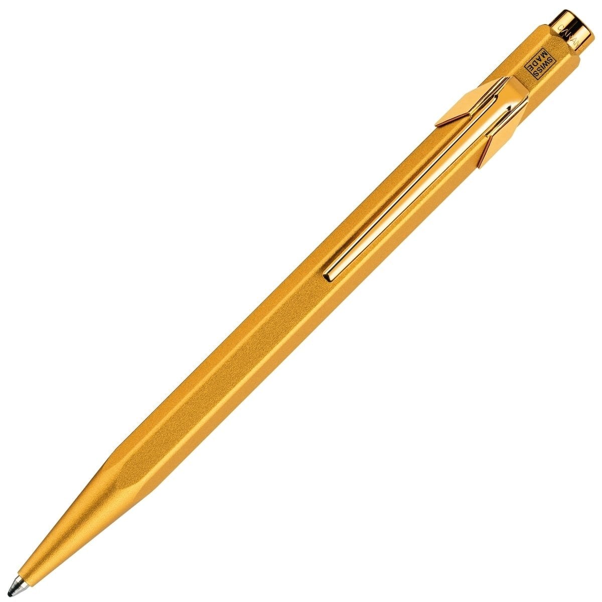 Die goldene Farbe, ergänzt durch goldene Zierelemente und einem kontemporären Design: Das ist der Caran d'Ache 849 Goldbar Kugelschreiber!