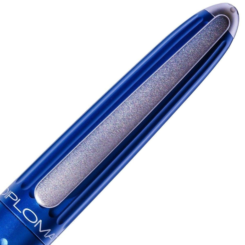 Die blaue Farbe, ergänzt durch silberne Zierelemente und einem modernen Design: Das ist der Diplomat Aero Bleistift!