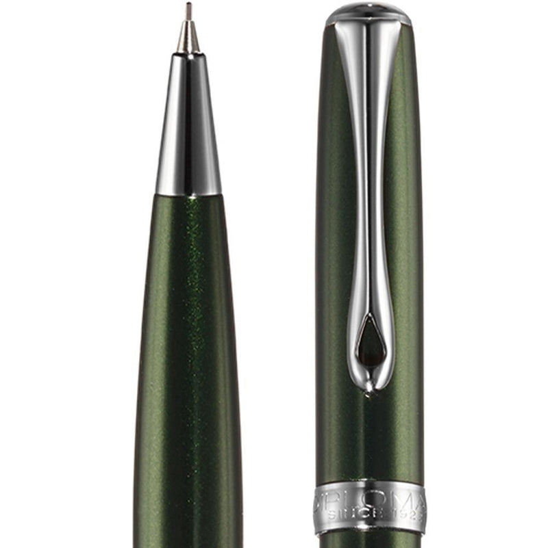 Die dunkelgrüne Farbe, silbere Zierelemente und ein Modern Classic Design sind Hauptmerkmale des Diplomat Excellence A2 Bleistifts.