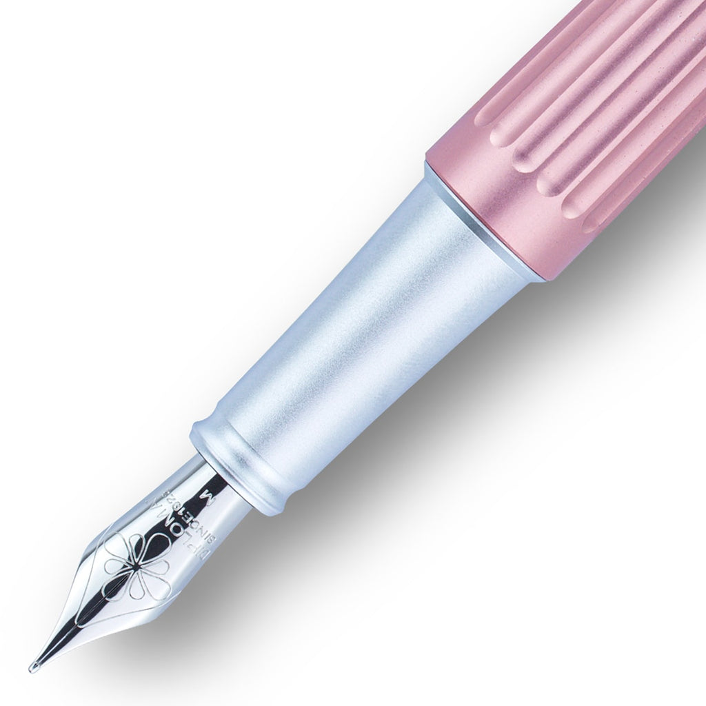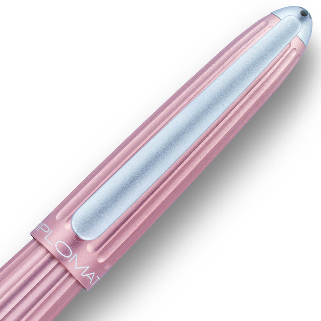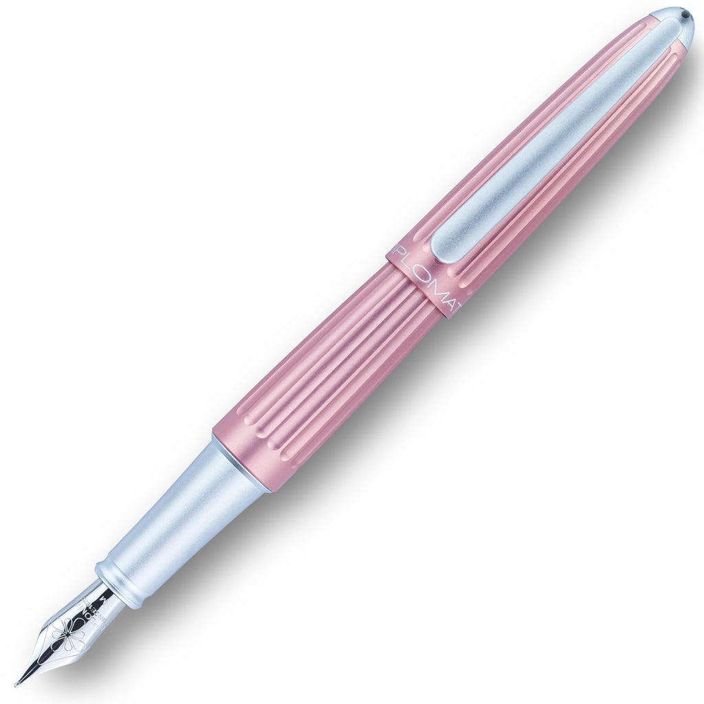 Der Diplomat Aero Füllfederhalter in rosan hat silberne Zierelemente und ein kontemporäres Design.