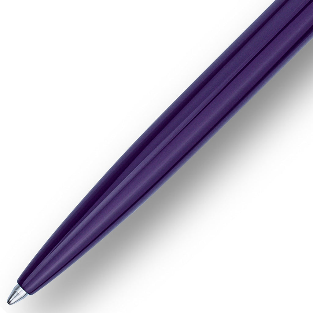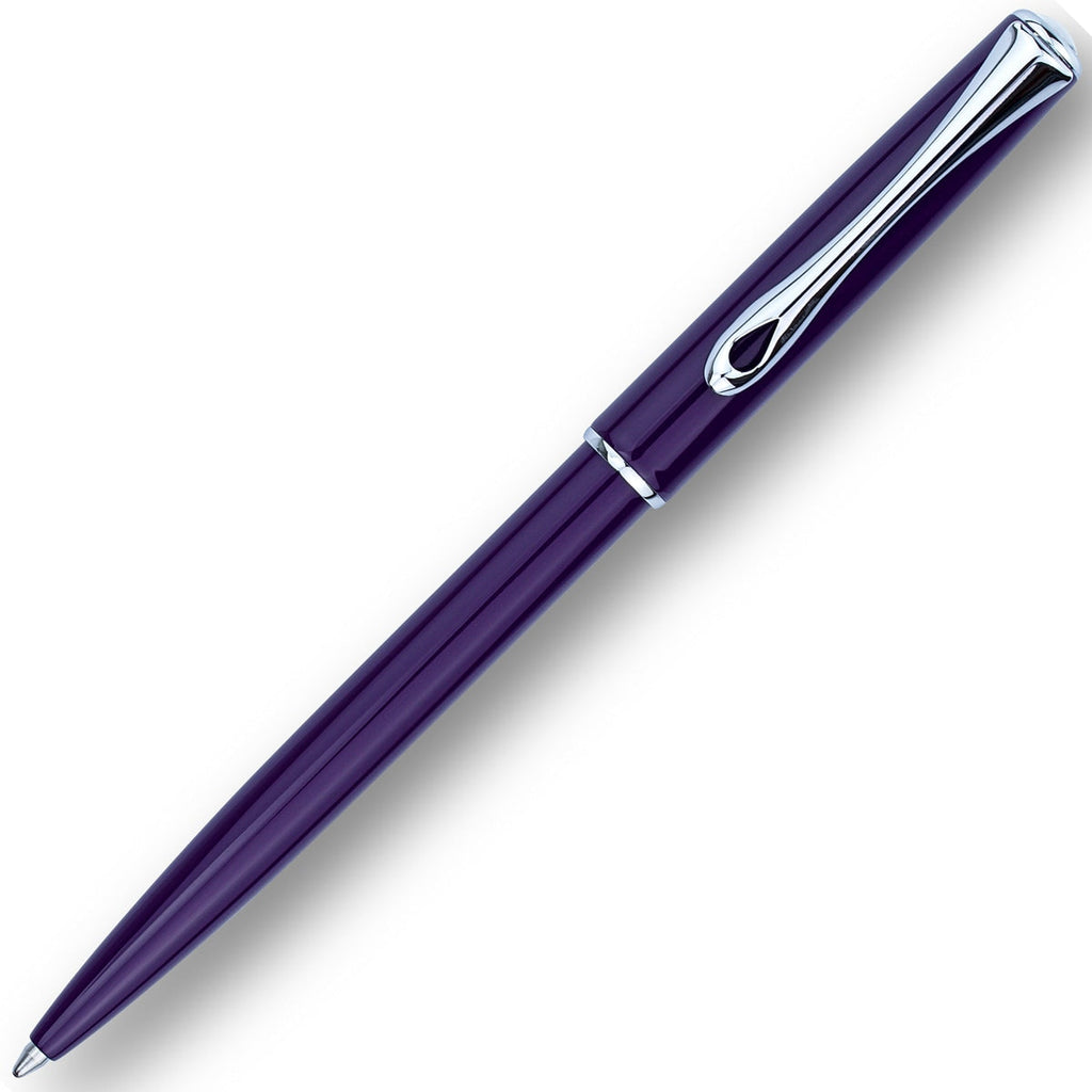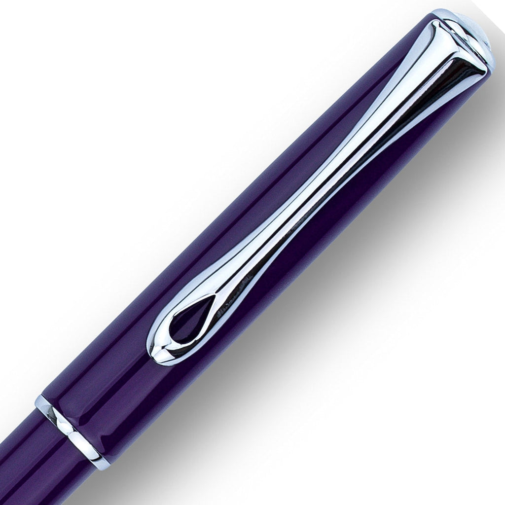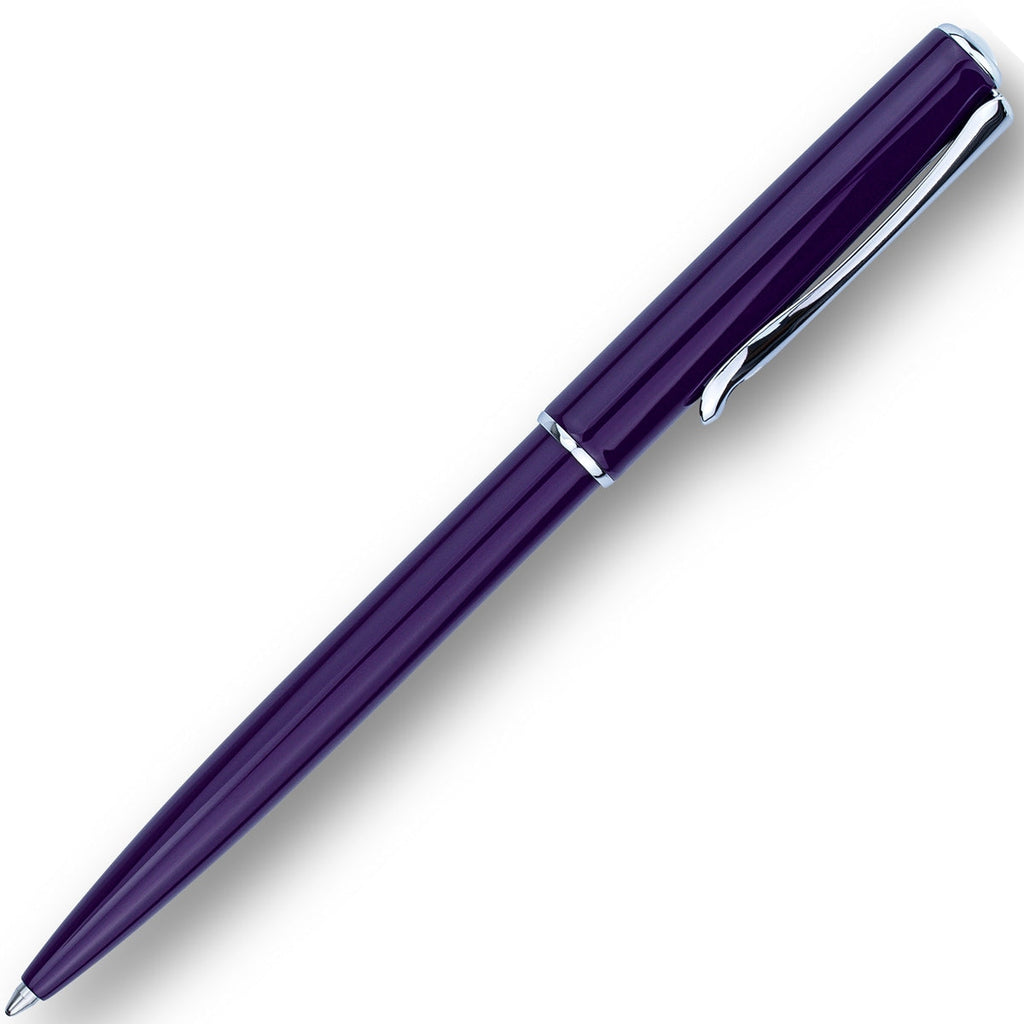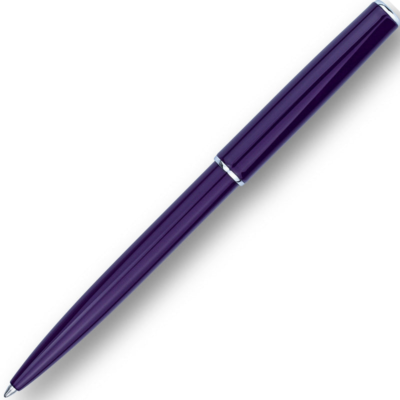 Der Diplomat Traveller Kugelschreiber in lilan wird mit silbernen Zierelementen vervollständigt und hat ein Modern Classic Design.