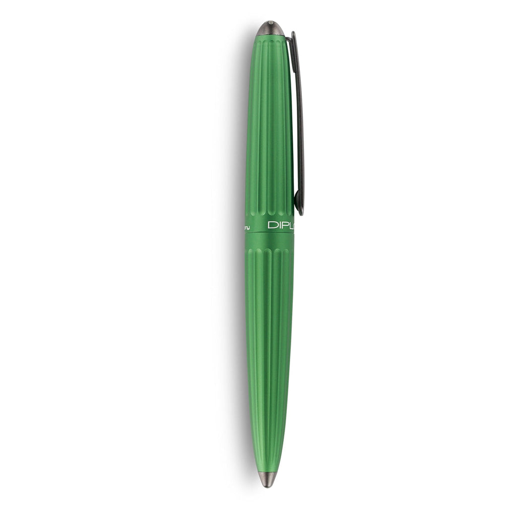 Die grüne Farbe, gunmetalfarbene Zierelemente und ein kontemporäres Design sind Hauptmerkmale des Diplomat Aero Tintenrollers.