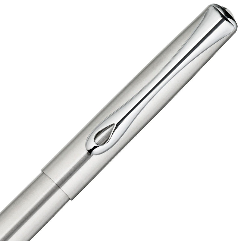 Der Diplomat Traveller Rollerball in chromfarben wird mit silbernen Zierelementen vervollständigt und hat ein Modern Classic Design.