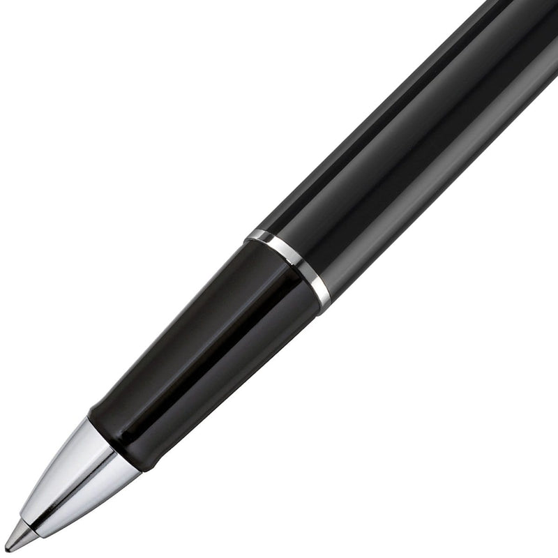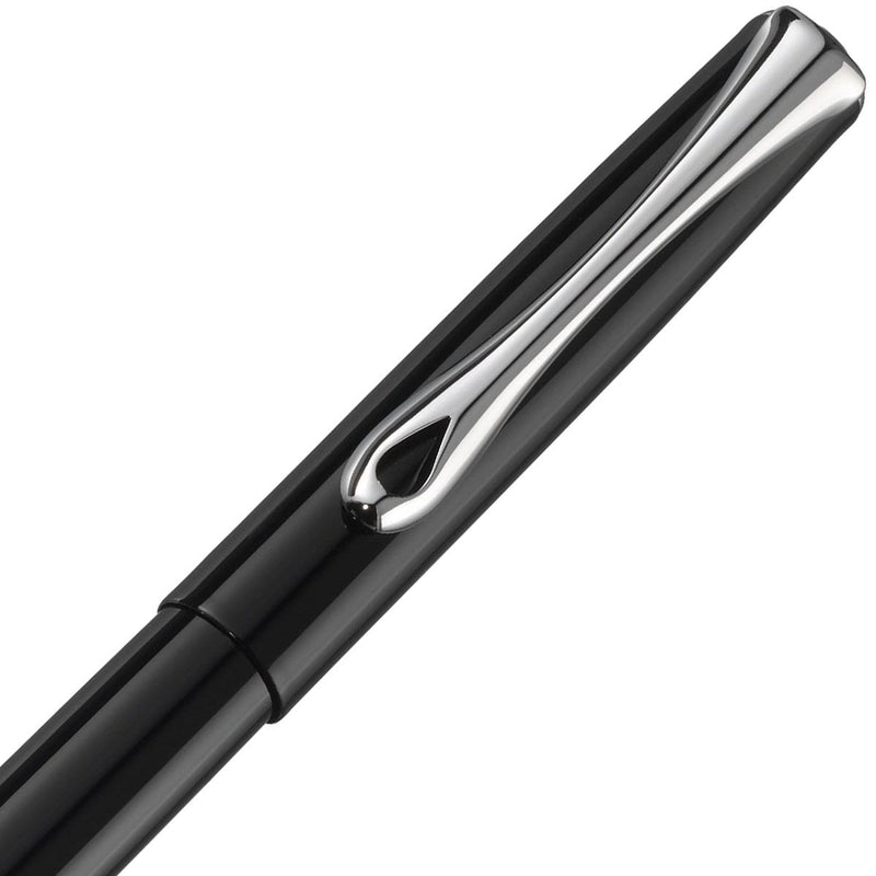 Der Diplomat Traveller Tintenroller in schwarz wird mit silbernen Zierelementen vervollständigt und hat ein Modern Classic Design.