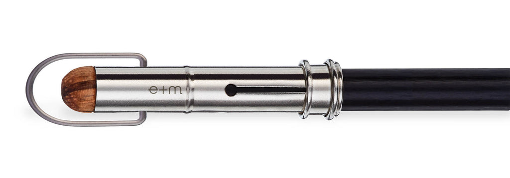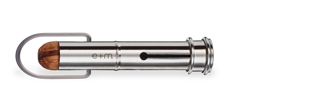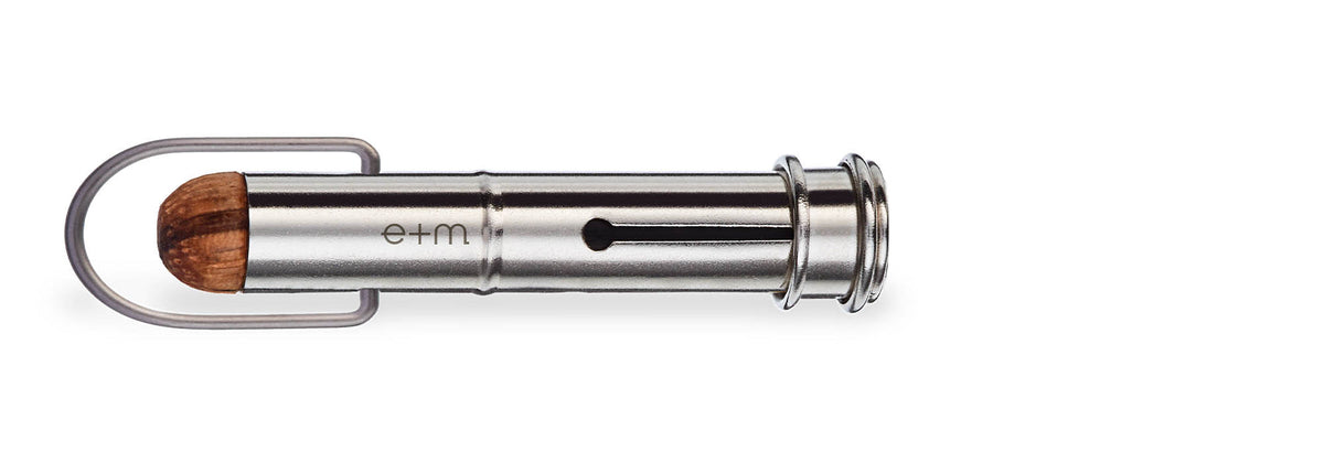 Der SPOT Bleistiftverlängerer von e+m vereint die natürliche Schönheit von Zebrano-Massivholz mit der Beständigkeit vernickelter Messingkomponenten. Dieses elegante Accessoire ist nicht nur ein praktischer Begleiter, sondern auch ein stilvolles Statement für Liebhaber hochwertiger Schreibgeräte.