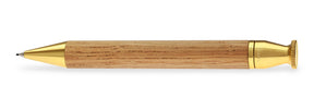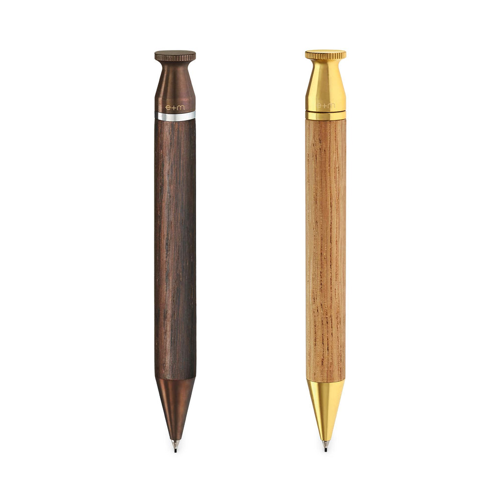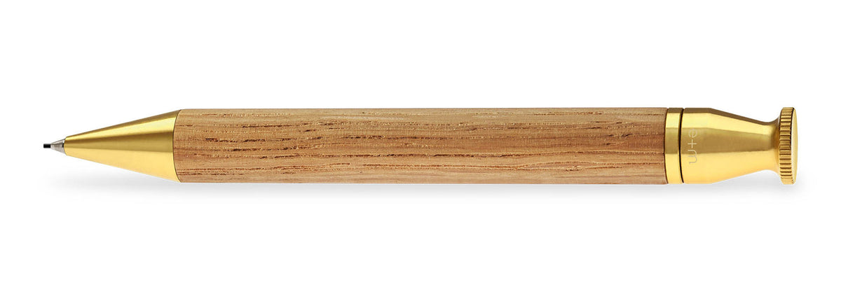 Der KING Drehbleistift von e+m Holzprodukte GmbH vereint traditionelles Handwerk mit modernem Design. Gefertigt aus massivem Eichenholz, wahlweise in natürlicher oder geräucherter Ausführung, bietet er eine wertige Haptik und ein edles Erscheinungsbild. Die robuste Messing-Mechanik sorgt für eine langlebige Funktionalität und bildet einen eleganten Kontrast zum Holz.