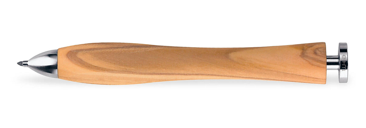 Der WHALE 2.0 Druckbleistift von e+m Holzprodukte vereint traditionelles Handwerk mit modernem Design. Gefertigt aus massivem Olivenholz oder Räuchereiche, bietet er eine robuste und zugleich elegante Haptik. Die vernickelte Messingmechanik sorgt für Präzision und Langlebigkeit, während die ergonomisch geformte Griffzone ein ermüdungsfreies Schreiben ermöglicht.