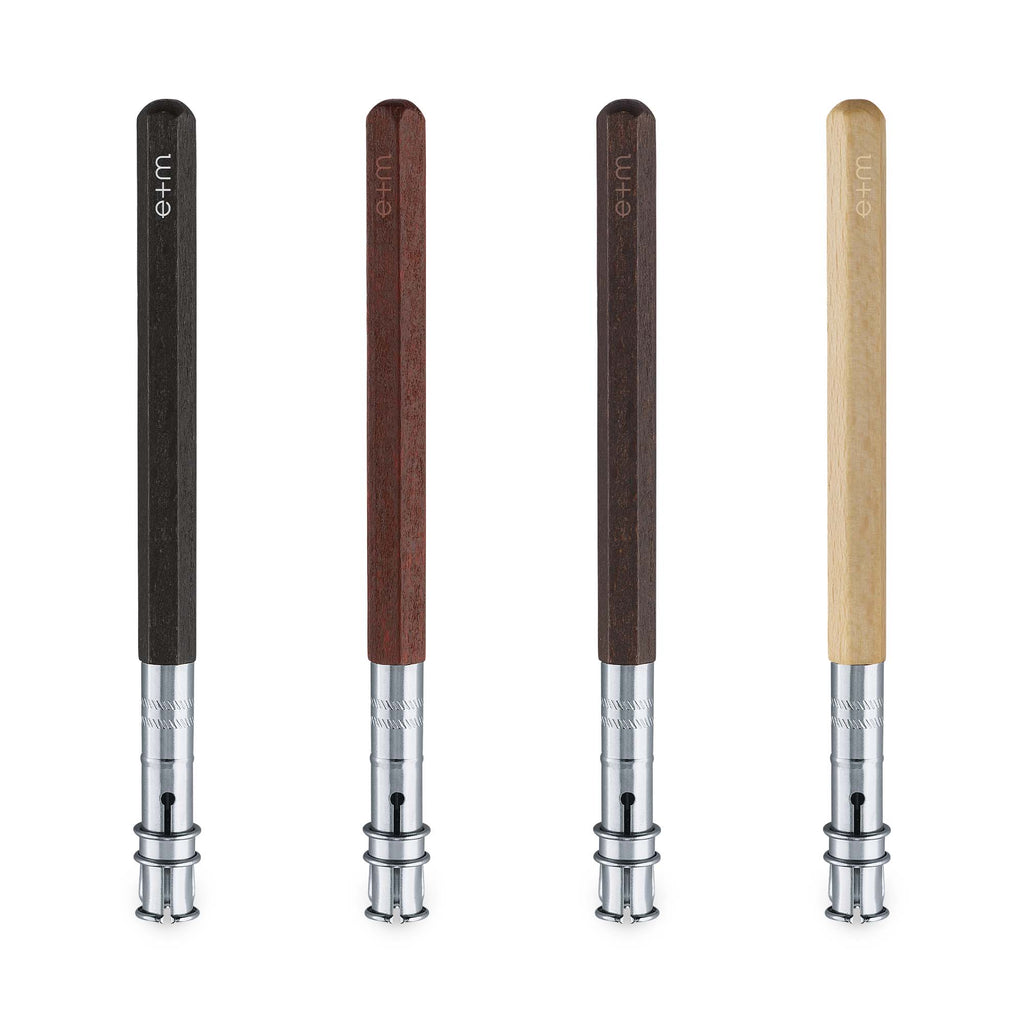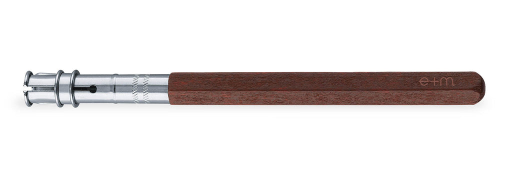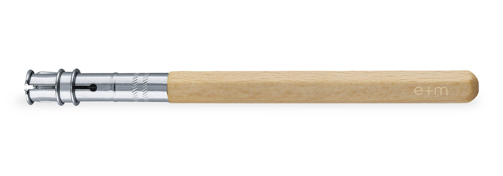 Mit einem vernickelten Metall-Klemmring ausgestattet, hält der Verlängerer gängige Holzbleistifte sicher und ermöglicht deren Nutzung bis zum kürzesten Stummel. Die harmonischen Farbvarianten – nussbraun, natur, schwarz und mahagonibraun – unterstreichen den natürlichen Charakter des Holzes.