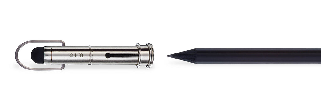 Der SMART SPOT Bleistiftverlängerer von e+m vereint klassisches Handwerk mit moderner Technologie. Gefertigt aus vernickeltem Messing, bietet dieses elegante Accessoire nicht nur eine Verlängerung für abgenutzte Bleistifte, sondern auch eine Stylus-Funktion für Smartphones und Tablets.