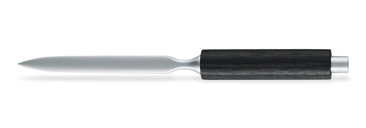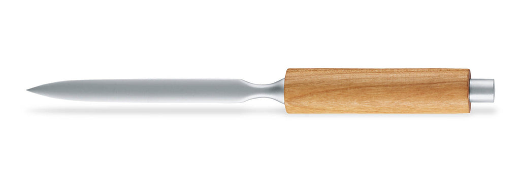 Der POSTMAN Brieföffner von e+m Holzprodukte GmbH vereint traditionelle Handwerkskunst mit modernem Design. Der Griff aus edlem Massivholz, wahlweise in Buche oder Wildkirsche, verleiht jedem Stück eine einzigartige Haptik und Ästhetik.