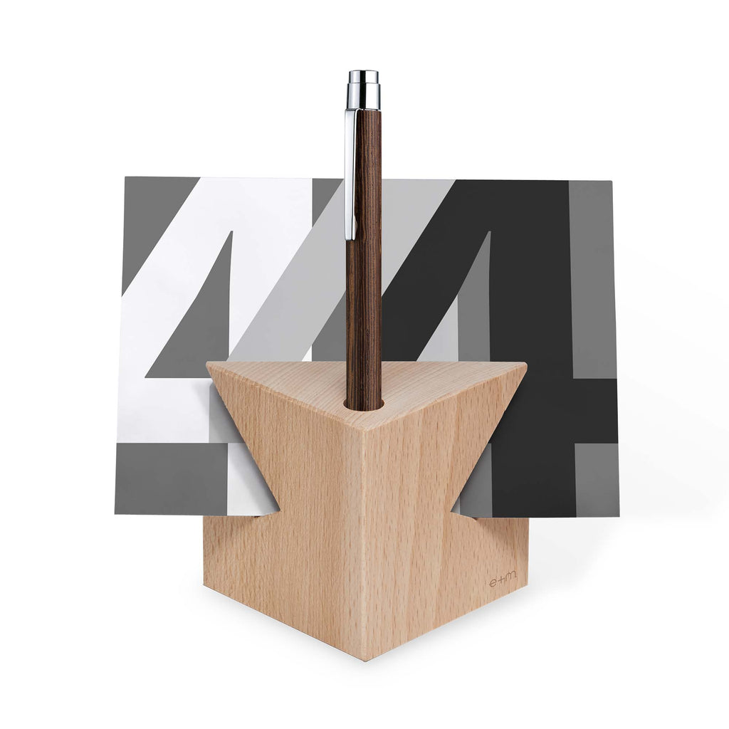Der CUBE TOWER von e+m ist ein elegantes Büro-Accessoire, das Funktionalität und minimalistisches Design vereint. Gefertigt aus massivem Buchenholz, besticht es durch seine natürliche Optik und die klare Formensprache der CUBE-Serie. Dieses stilvolle Stück sorgt für Ordnung auf dem Schreibtisch, indem es Stifte und Notizzettel an einem Ort bündelt.